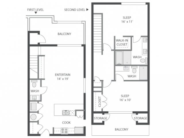 Modelo de apartamento: Morgan2 Dormitorios, 2 Baños, 1111 sq ftDisponible Ahora![]()