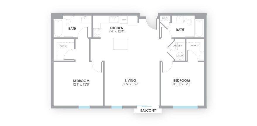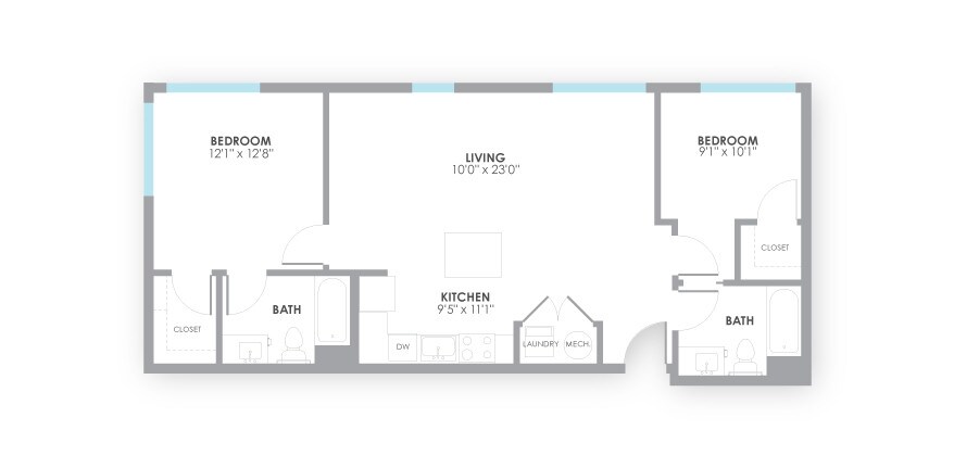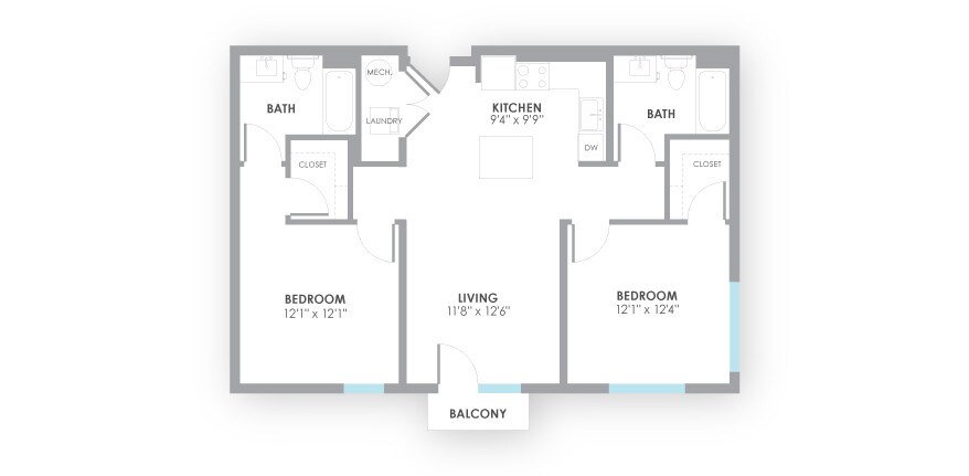 Fuse 2 - Plano 1 Unidad de apartamento: 419Modelo de apartamento: Fuse 22 Dormitorios, 2 Baños, 980 sq ftDisponible February 25, 2026Switch