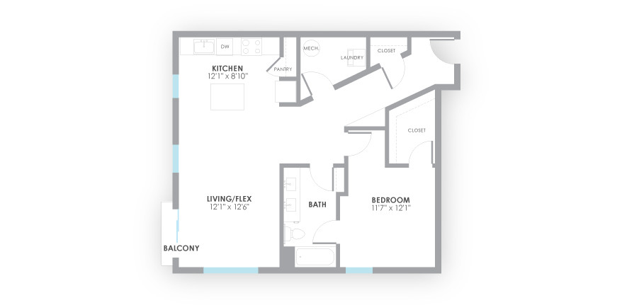 Modelo de apartamento: Pulse1 Dormitorio, 1 Baño, 734 sq ftNo Disponible![]()