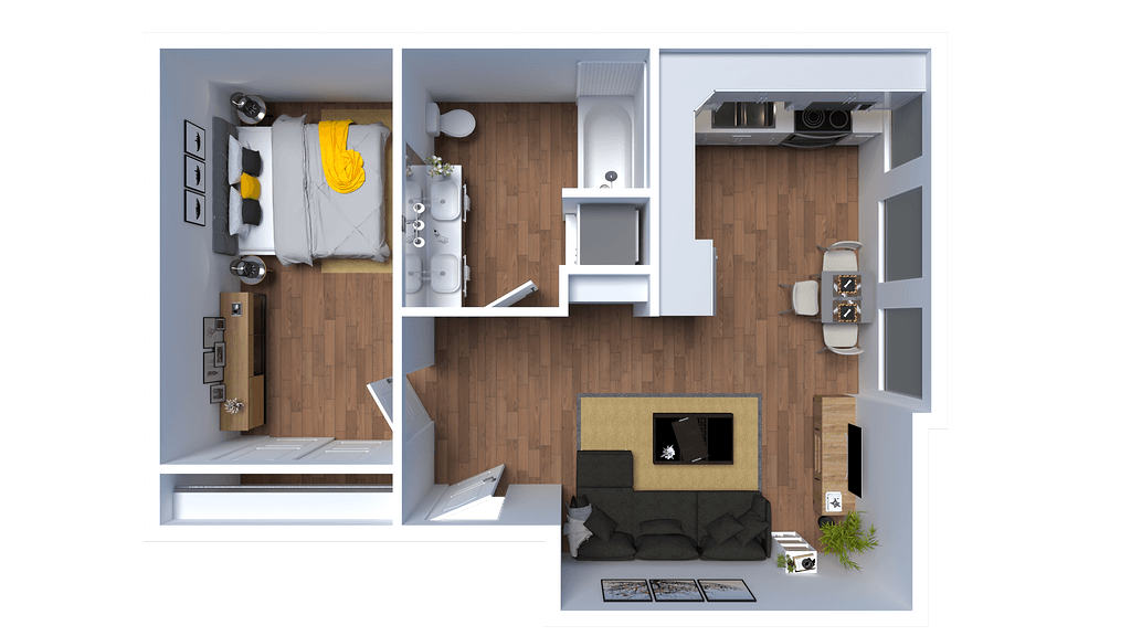 Modelo de apartamento: Unit NDesde $1,139Estudio, 1 Baño, 413 sq ftDisponible Ahora![]()