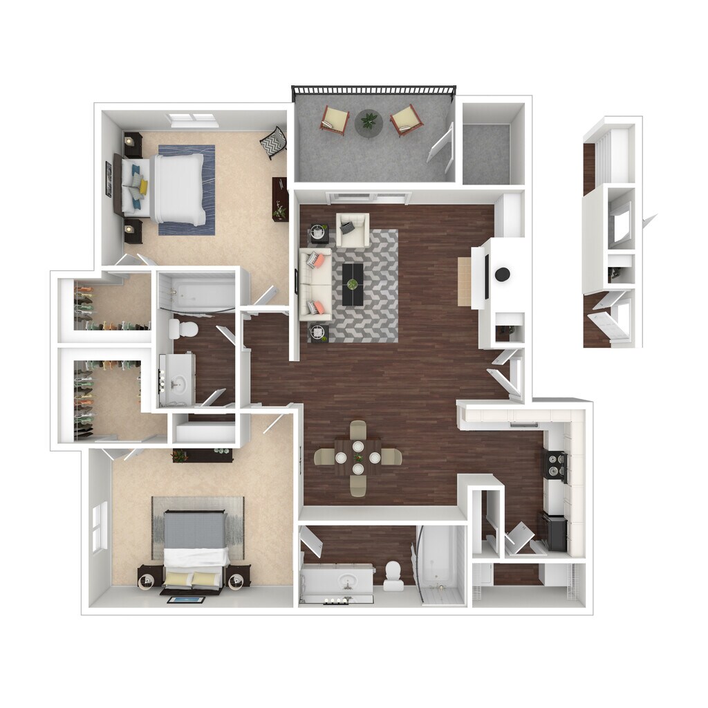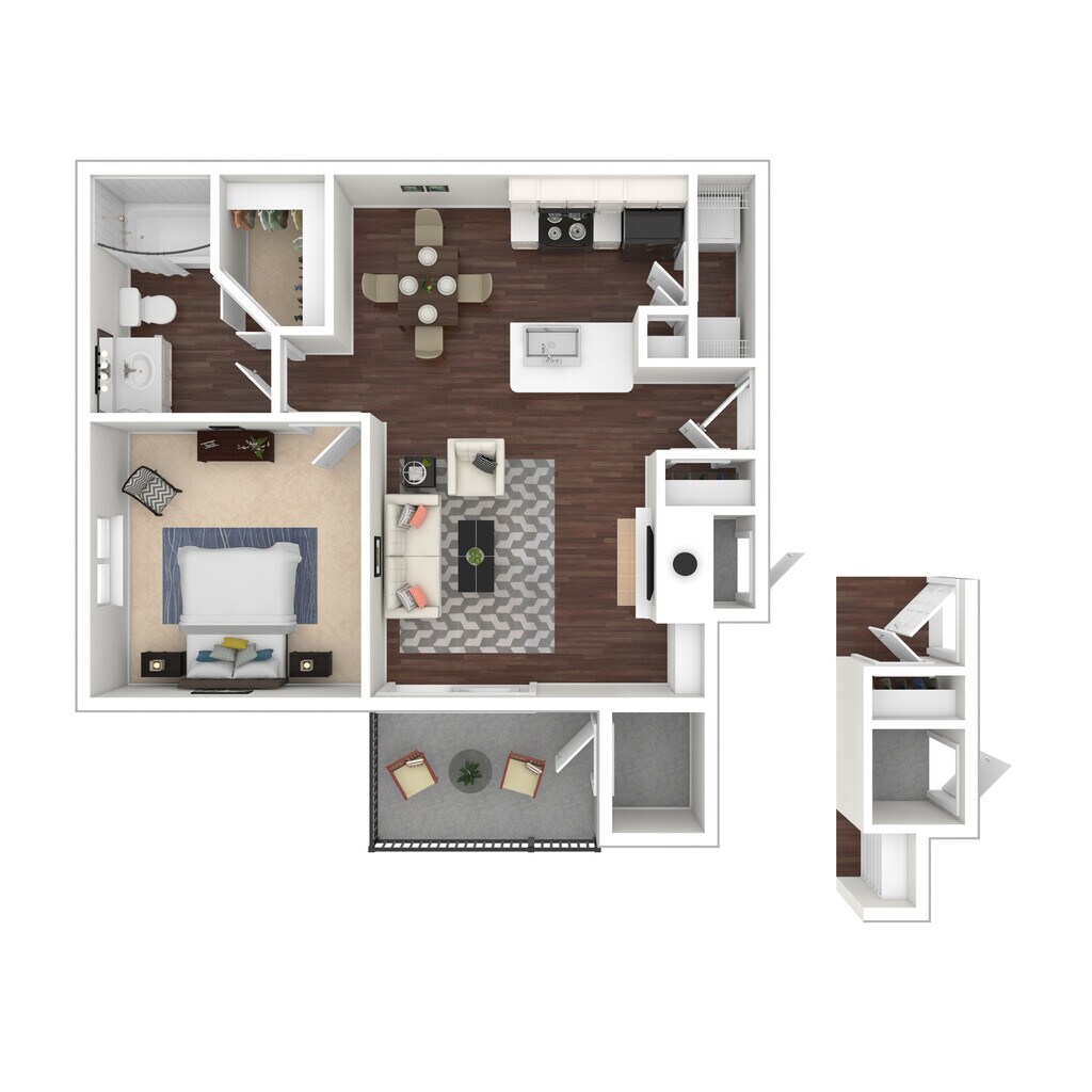1 Dormitorio, 1 Baño, 781 pies²Disponible AhoraGalería del Modelo