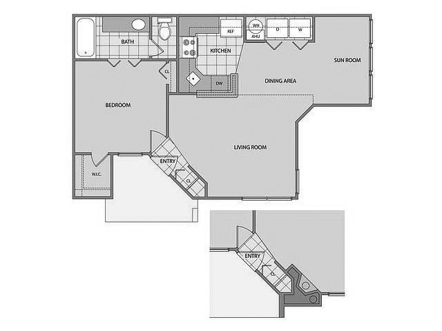 1 Dormitorio, 1 Baño, 672 pies²Disponible AhoraGalería del Modelo