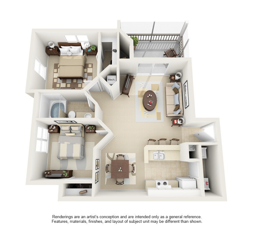 2 Dormitorios, 2 Baños, 1100 pies²Disponible AhoraGalería del Modelo
