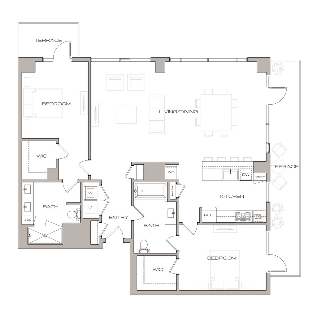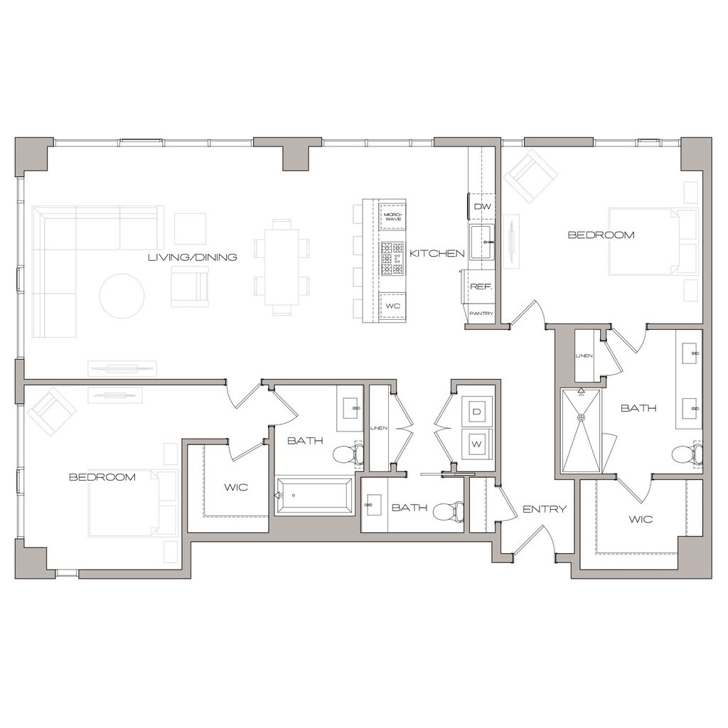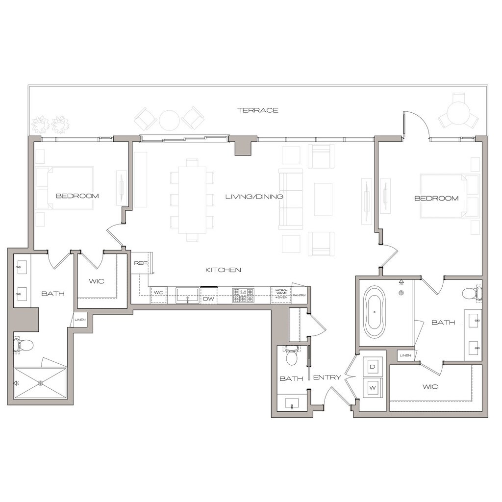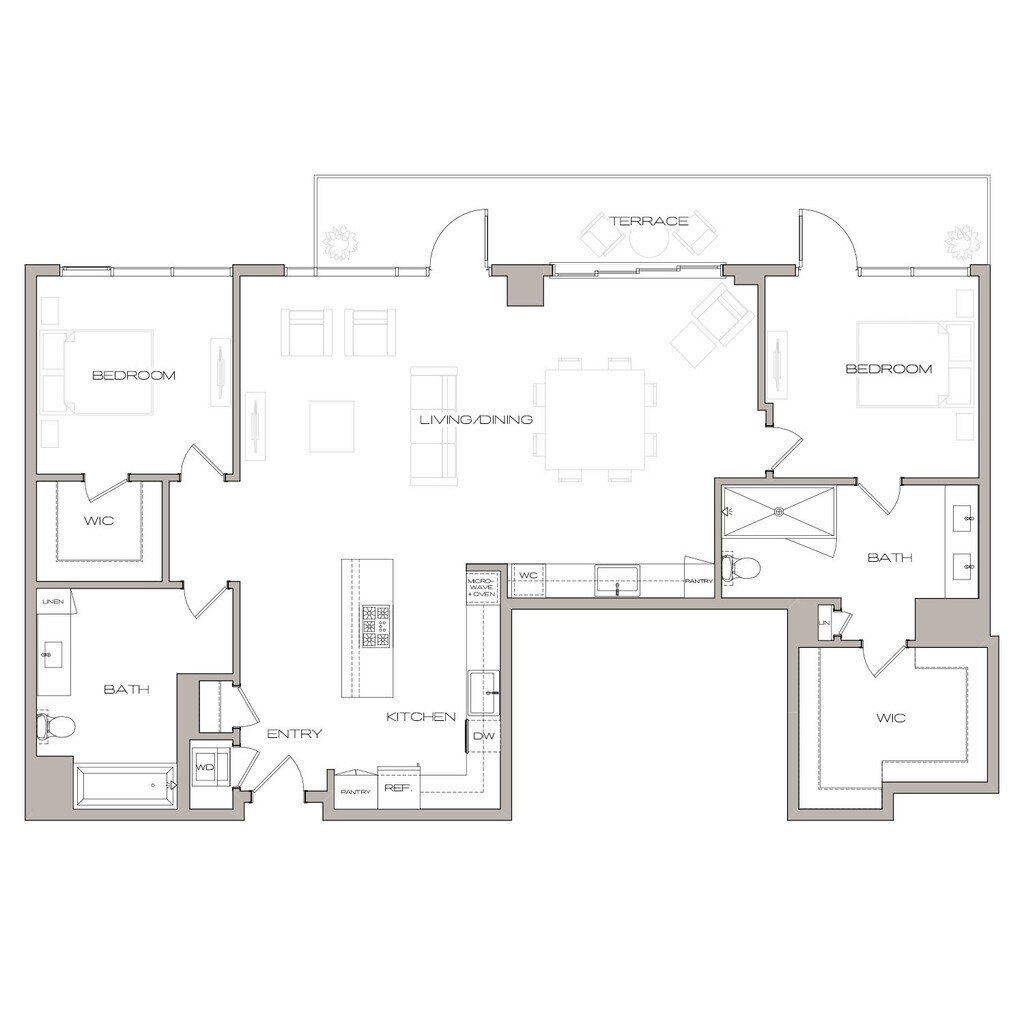 1 Dormitorio, 1 Baño, 743 pies²Disponible AhoraGalería del Modelo