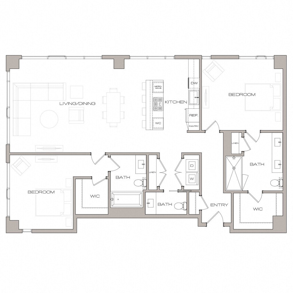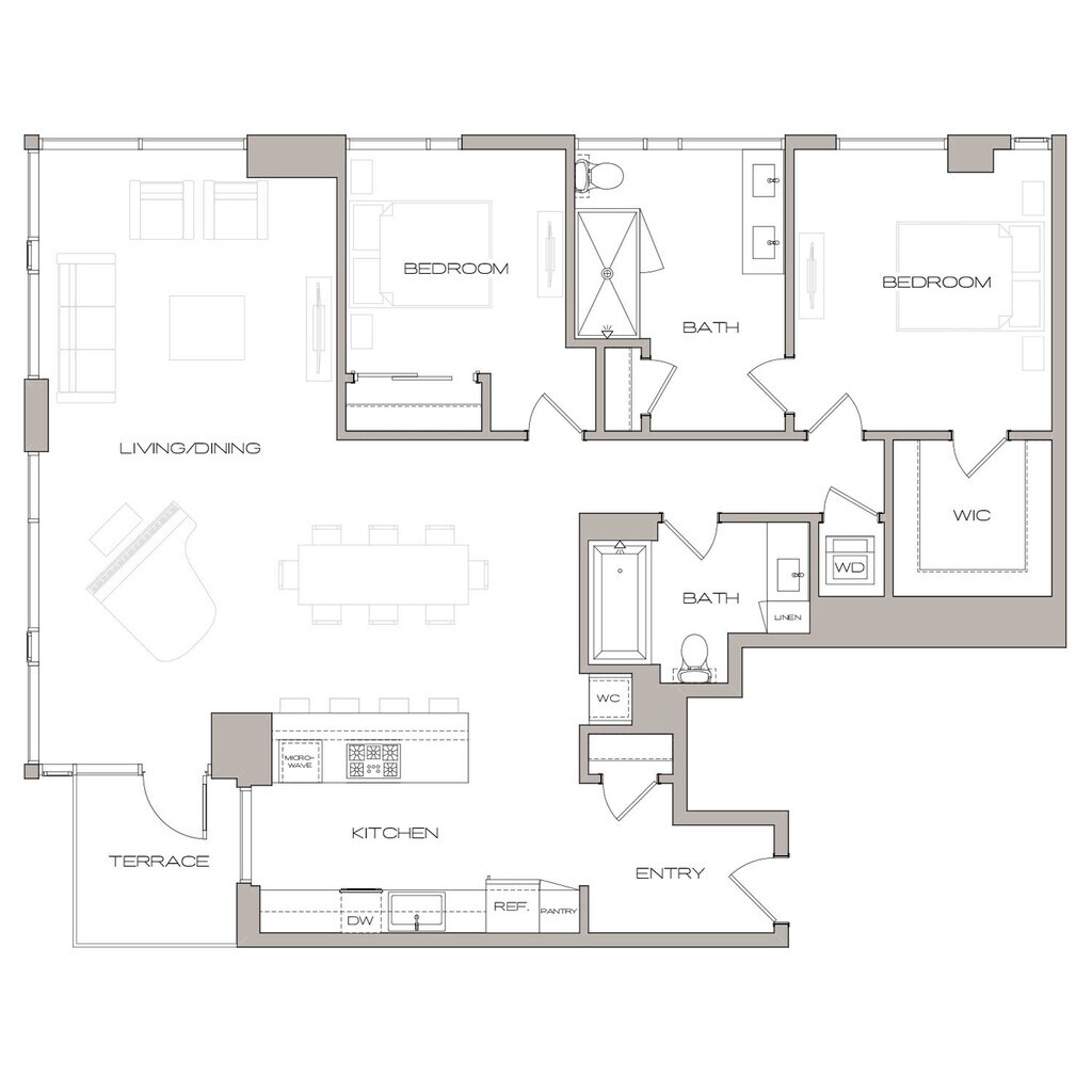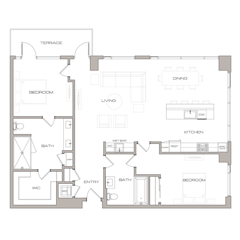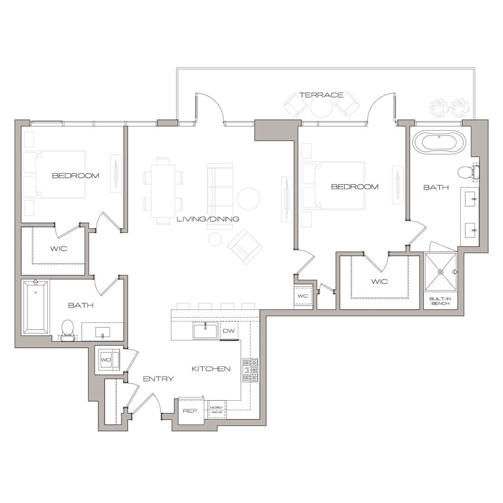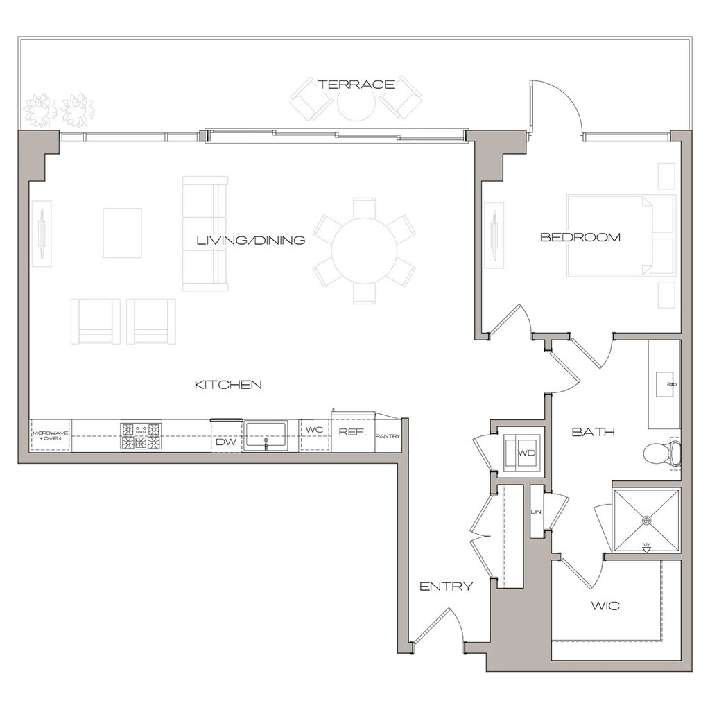 1 Dormitorio, 1 Baño, 821 pies²Disponible AhoraGalería del Modelo