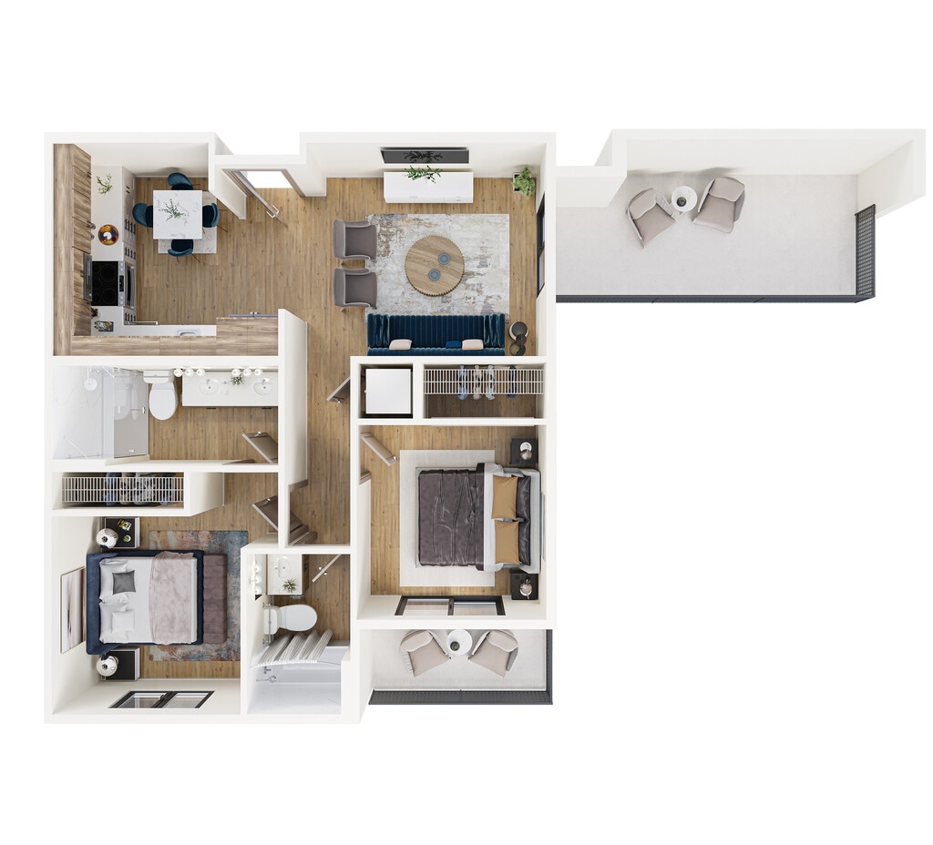 Modelo de apartamento: GrandDesde $1,7992 Dormitorios, 2 Baños, 893-943 sq ftDisponible December 1, 2025![]()