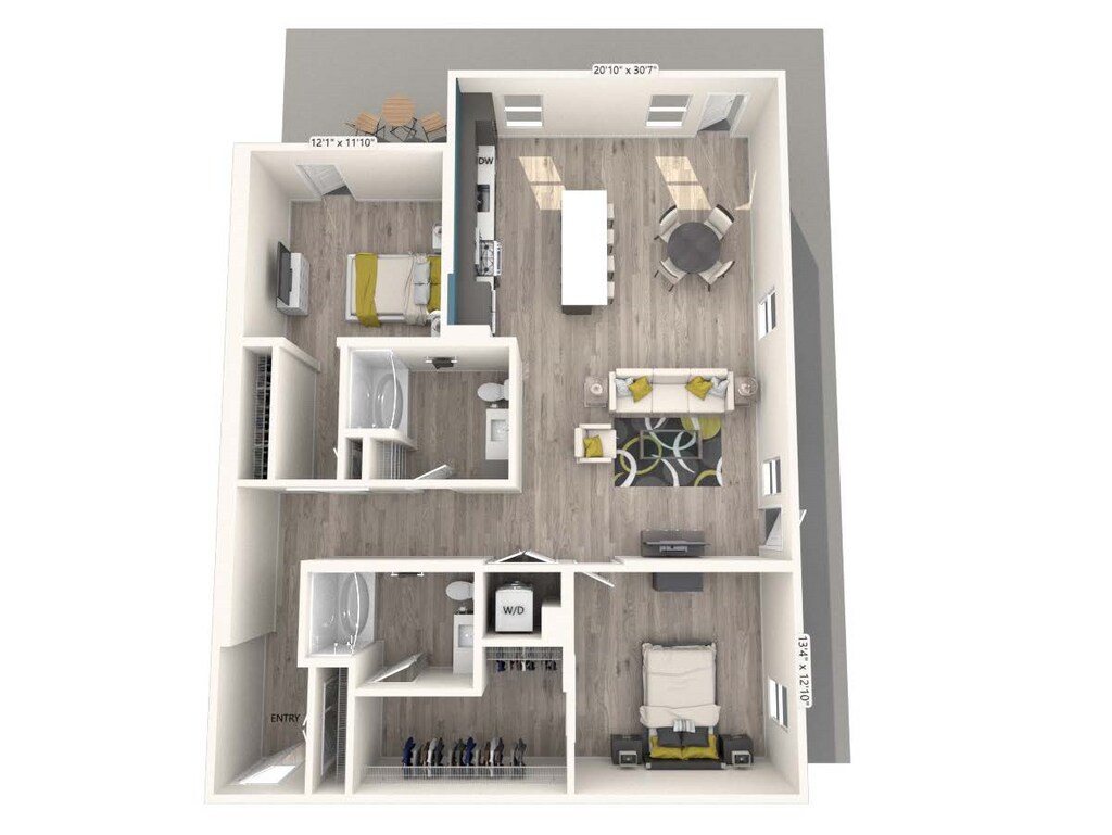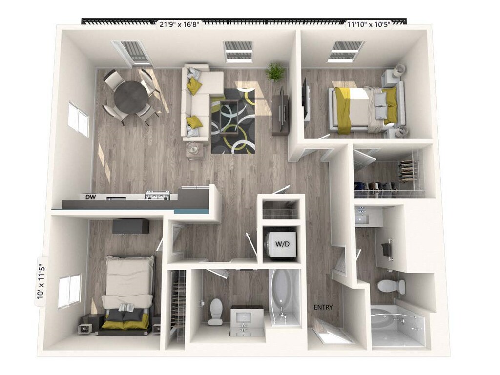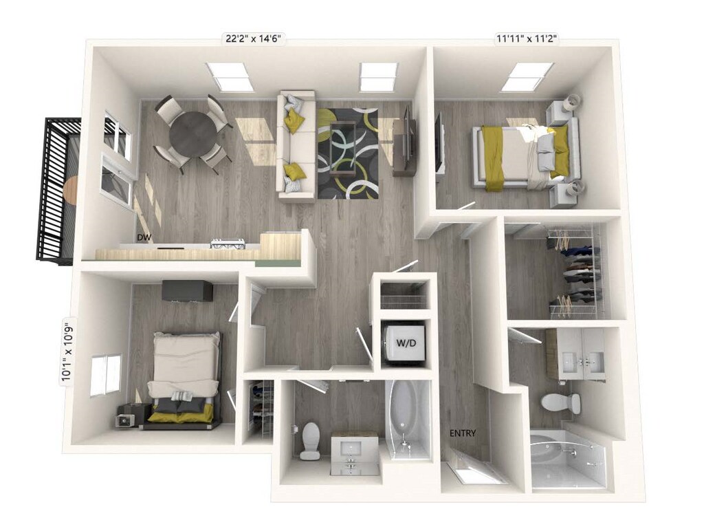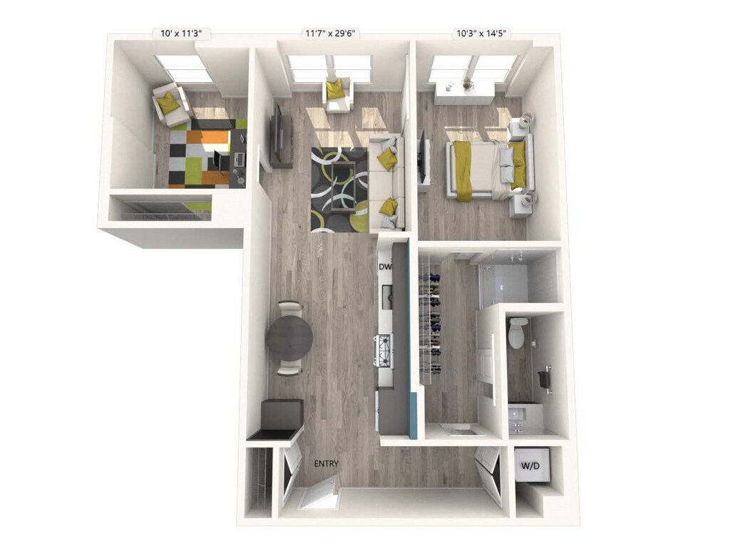 1 Dormitorio, 1 Baño, 761 pies²Disponible AhoraGalería del Modelo