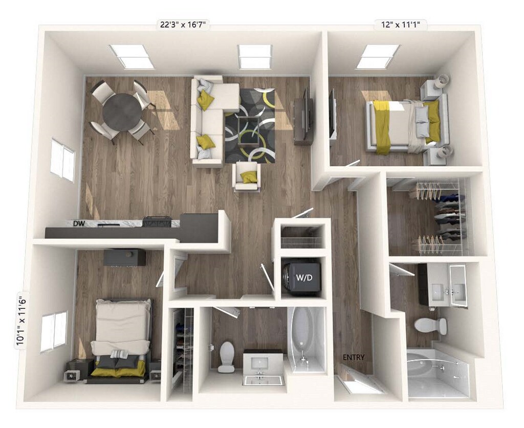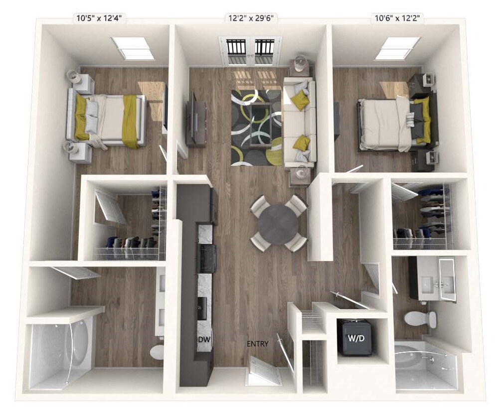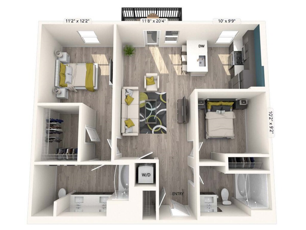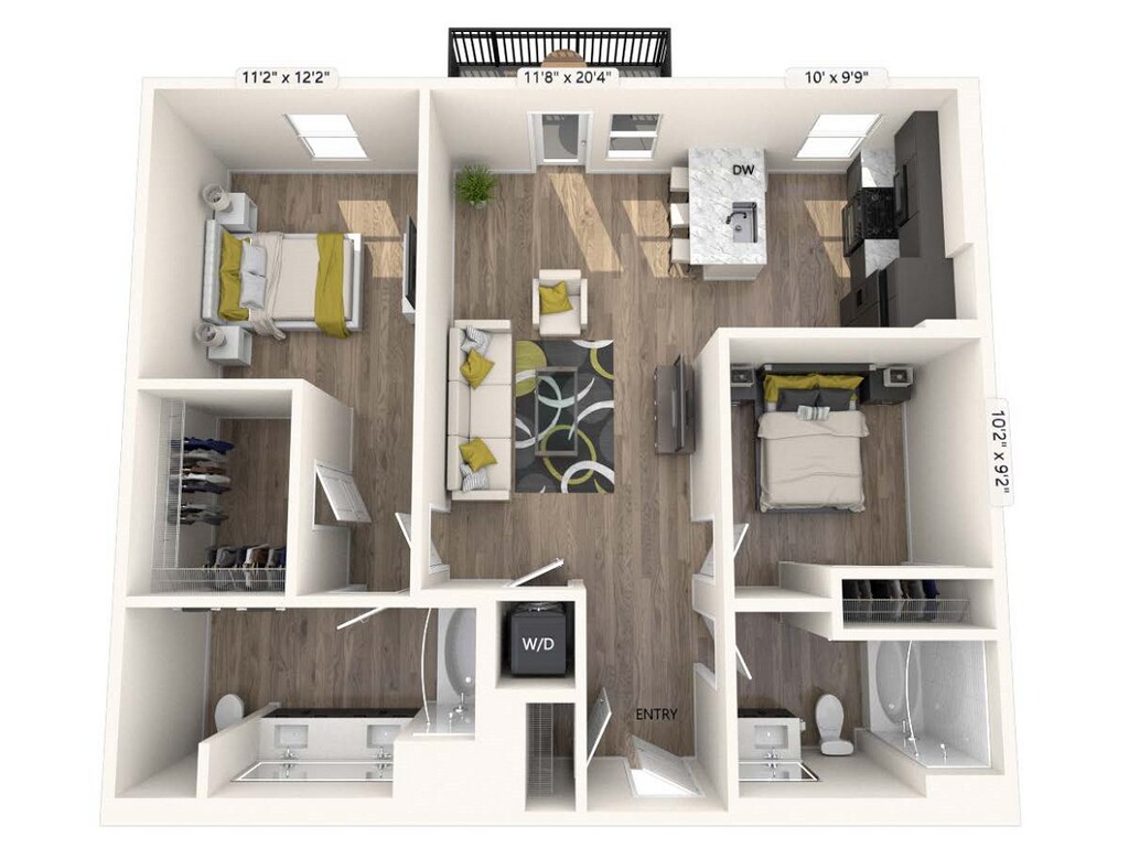 1 Dormitorio, 1 Baño, 761 pies²Disponible AhoraGalería del Modelo