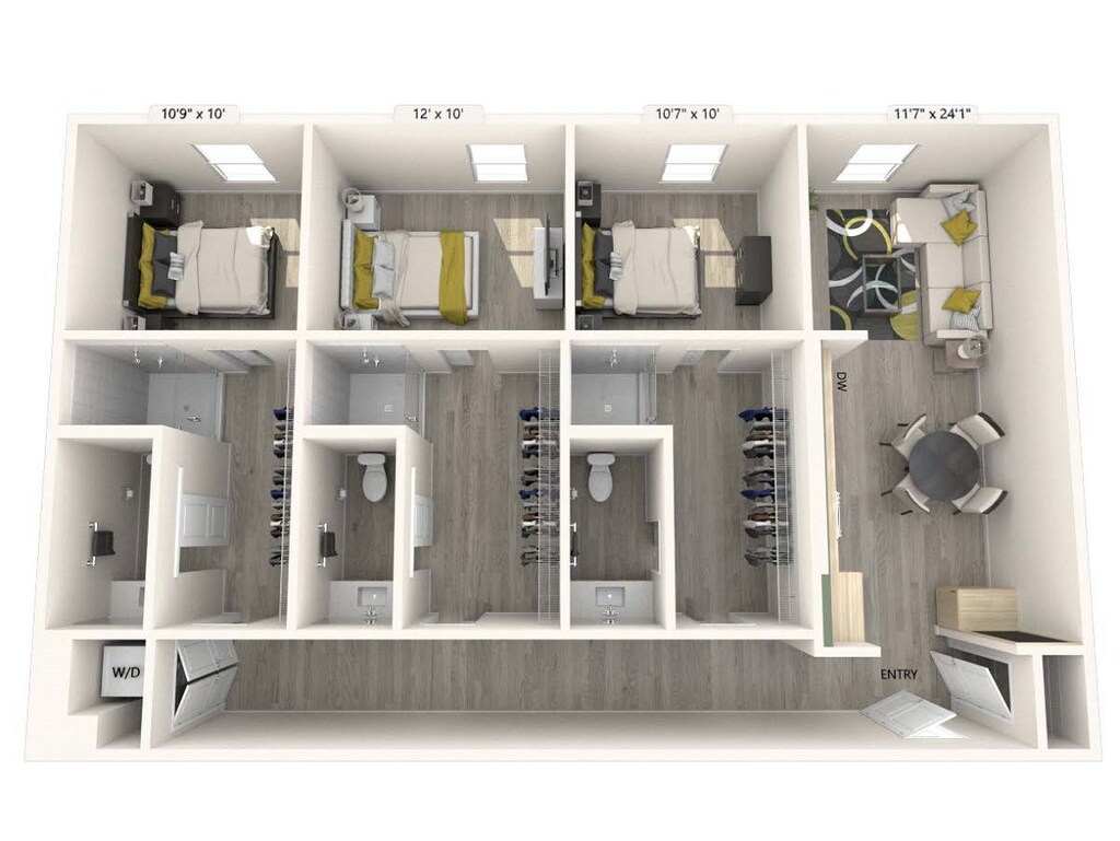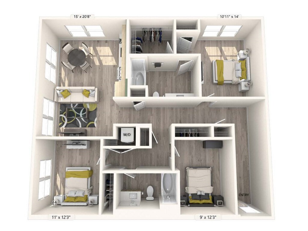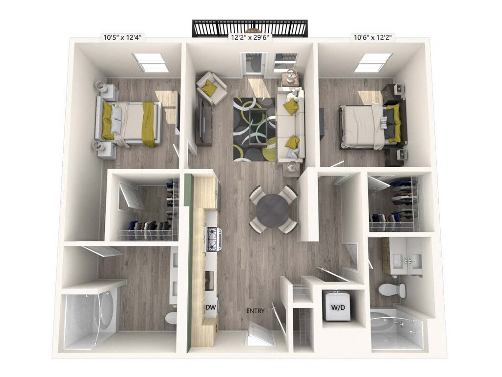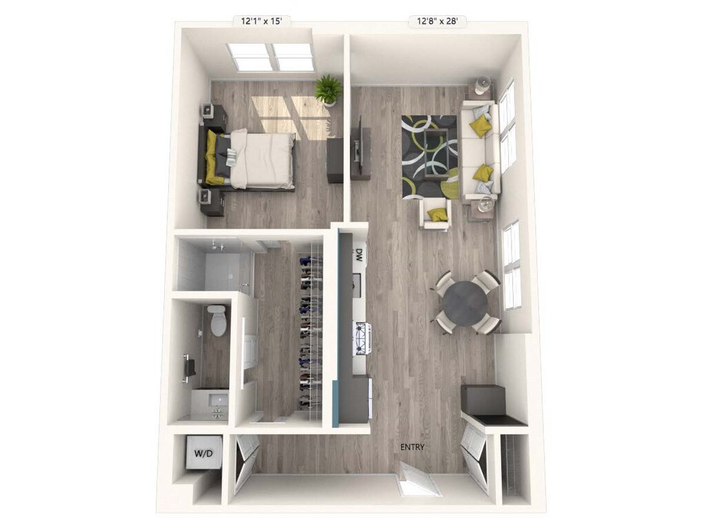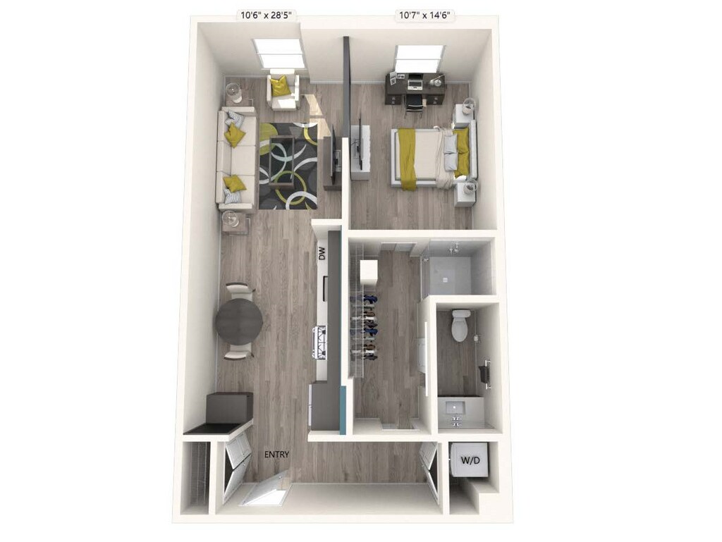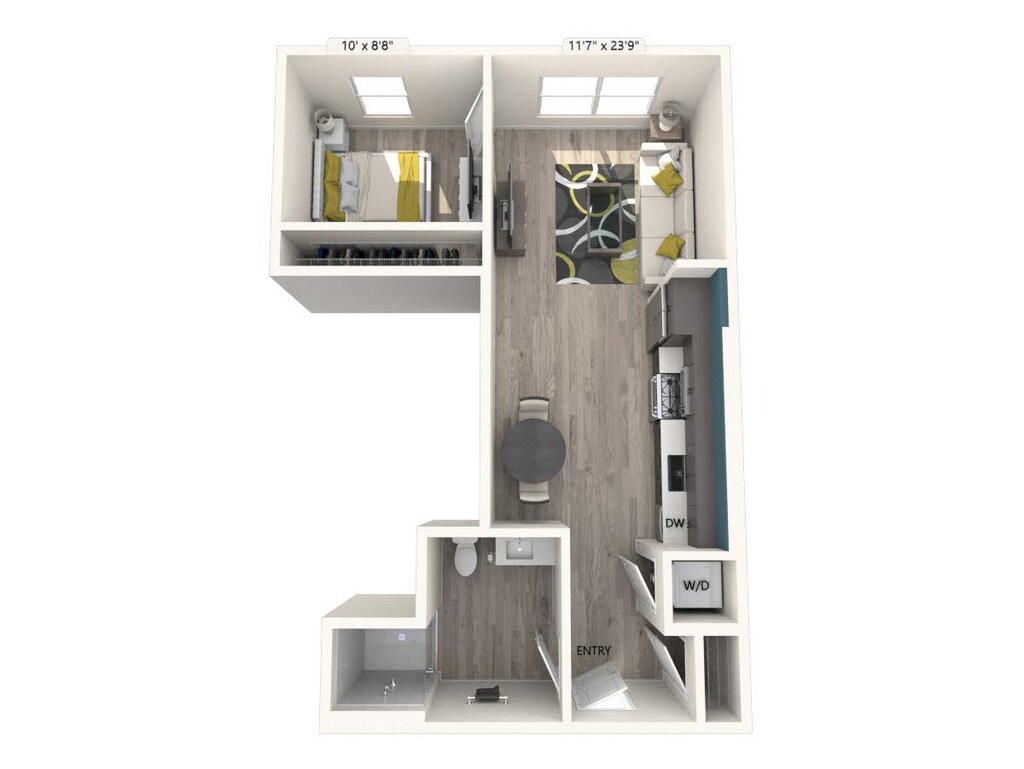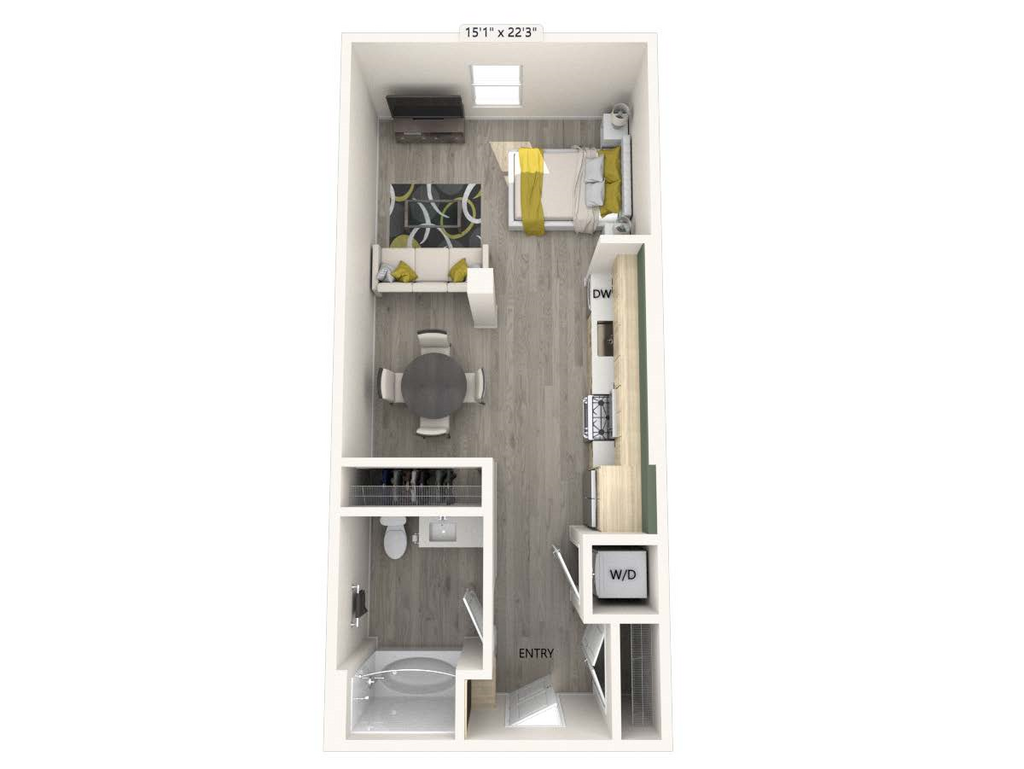 Modelo de apartamento: S2-FinishII-415-421sfDesde $2,035Estudio, 1 Baño, 417-421 sq ftDisponible Ahora![]()