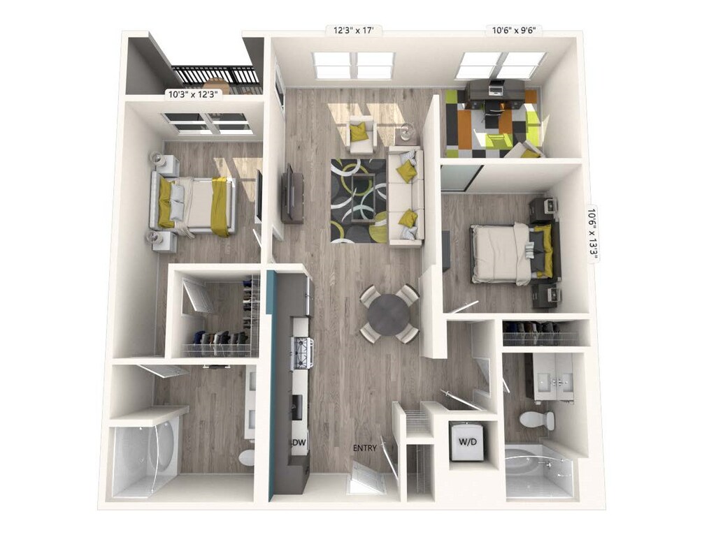 Modelo de apartamento: S5-FinishII-603sf$2,307Estudio, 1 Baño, 607 sq ftDisponible Ahora![]()