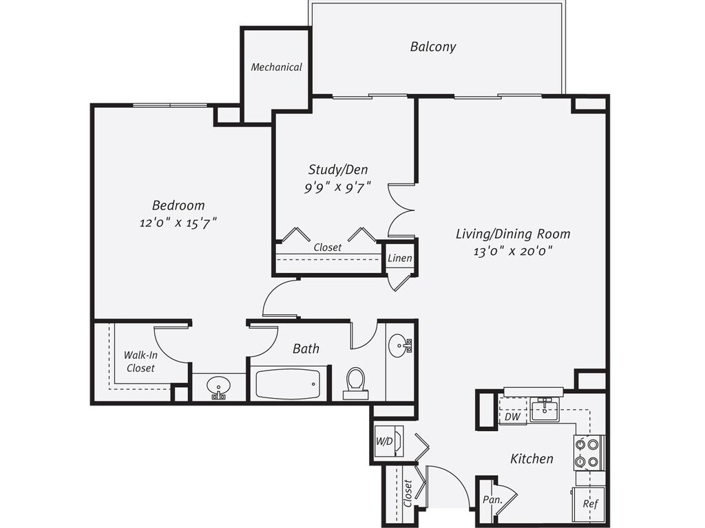 A15D - Plano 1 Unidad de apartamento: H-1008Modelo de apartamento: A15D$2,4451 Dormitorio, 1 Baño, 919 sq ftDisponible ProntoPlano: A12