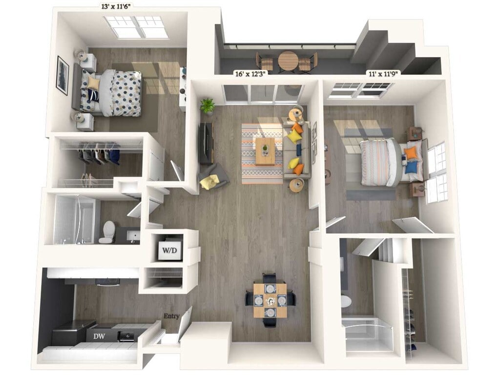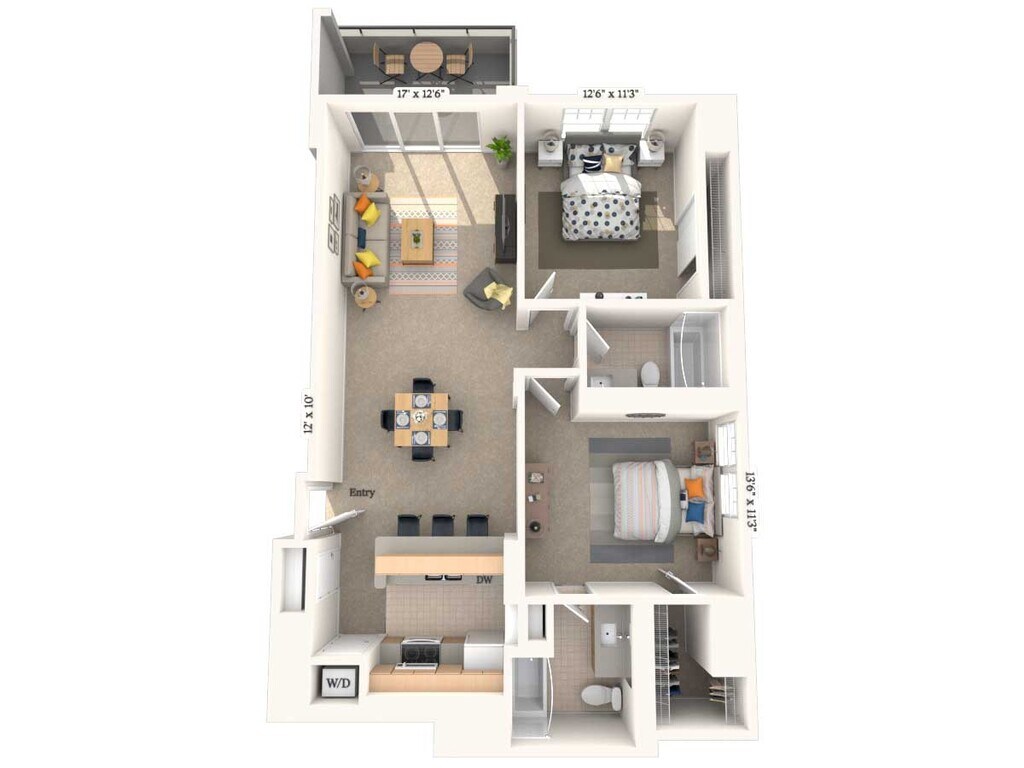 Modelo de apartamento: A3-1Desde $2,6251 Dormitorio, 1 Baño, 710 sq ftDisponible AhoraLos planos son representaciones artísticas. Todas las dimensiones son aproximadas. El producto y las especificaciones reales pueden variar en tamaño o detalle. No todas las características están disponibles en cada vivienda en alquiler. Por favor, consulta con un representante para obtener más detalles.
