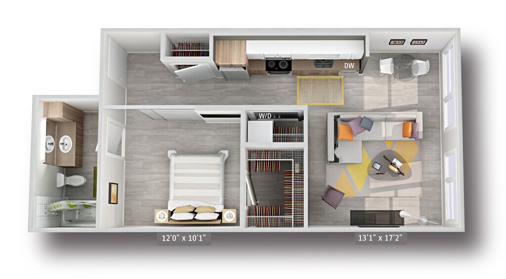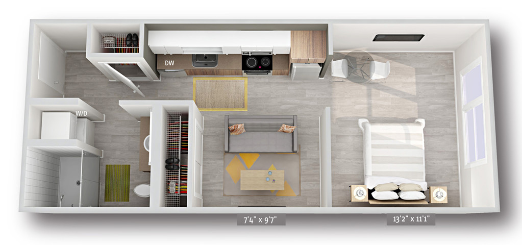 1 Dormitorio, 1 Baño, 527 pies²Disponible AhoraGalería del Modelo