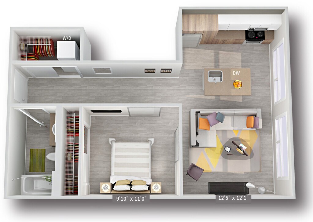 1 Dormitorio, 1 Baño, 491-530 pies²Disponible AhoraGalería del Modelo