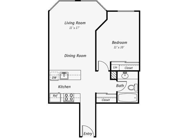 1 Dormitorio, 1 Baño, 614 pies²Disponible AhoraGalería del Modelo