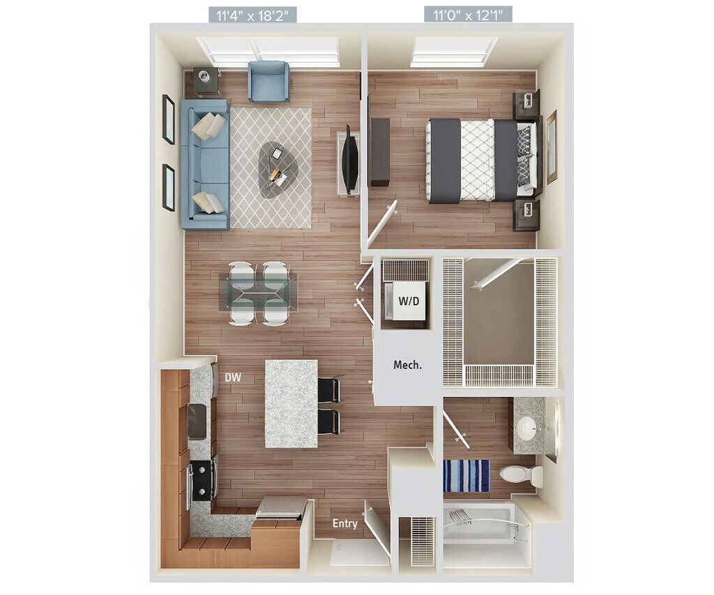 Modelo de apartamento: A3-668SF-Apt219Desde $3,0151 Dormitorio, 1 Baño, 668 sq ftDisponible December 24, 2025![]()