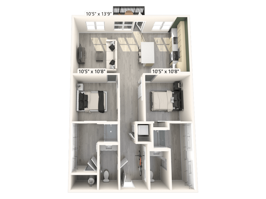 1 Dormitorio, 1 Baño, 634 pies²Precio Mensual TotalDisponible AhoraGalería del Modelo