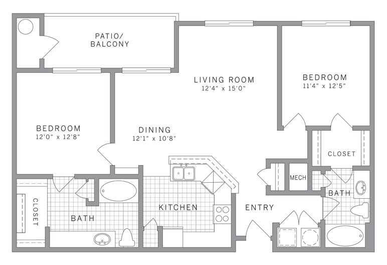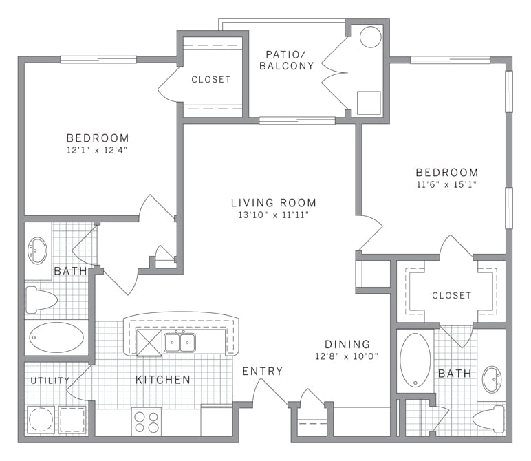 Fecha Disponibilidad Unidad Pies² Disponible Ahora B1 1119 pies² Modelo de apartamento: B12 Dormitorios, 2 Baños, 1119 sq ftDisponible AhoraB1 - Plano 1 Plano: B2