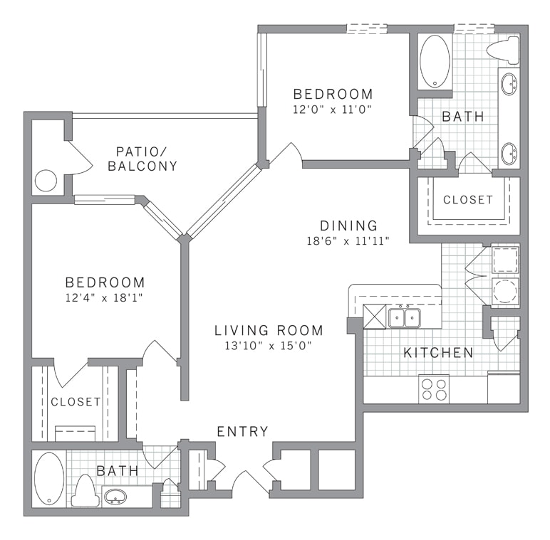 Modelo de apartamento: B22 Dormitorios, 2 Baños, 1138 sq ftNo DisponibleB2 - Plano 1 Plano: B3