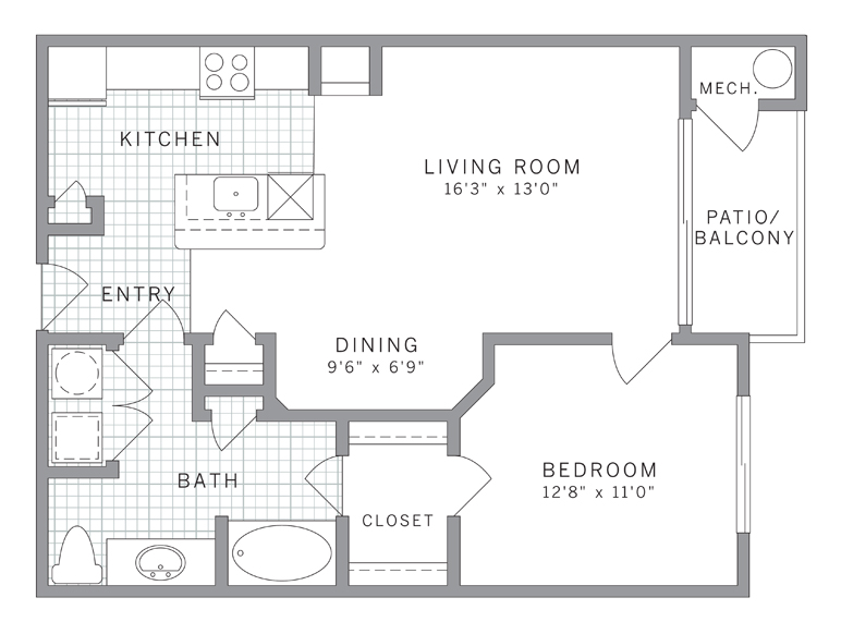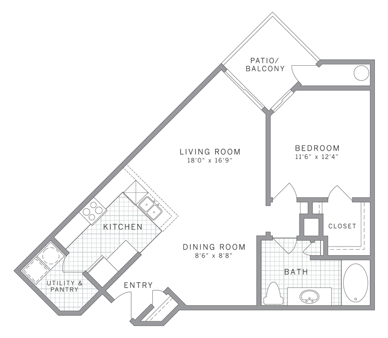 1 Dormitorio, 1 Baño, 827 pies²El más grandeEsta opción tiene las unidades más grandes para este modeloGalería del Modelo