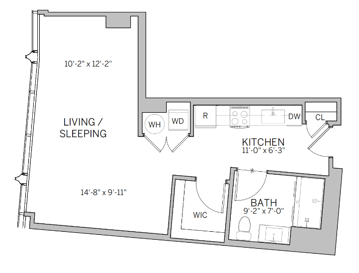 Estudio, 1 Baño, 534 pies²Disponible AhoraGalería del Modelo