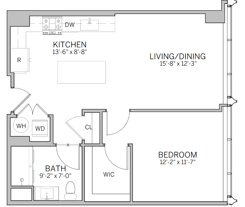 1 Dormitorio, 1 Baño, 742 pies²Disponible AhoraGalería del Modelo