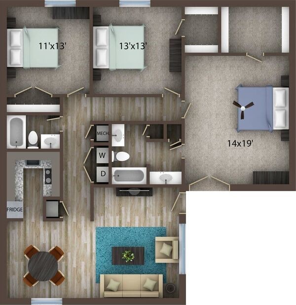 Modelo de apartamento: Aldridge$1,4101 Dormitorio, 1 Baño, 728 sq ftNo Disponible![]()