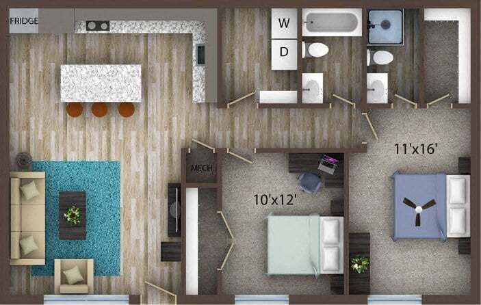 2 Dormitorios, 2 Baños, 1118 pies²Disponible AhoraEl más baratoEsta opción tiene los precios más bajos para este modeloGalería del Modelo
