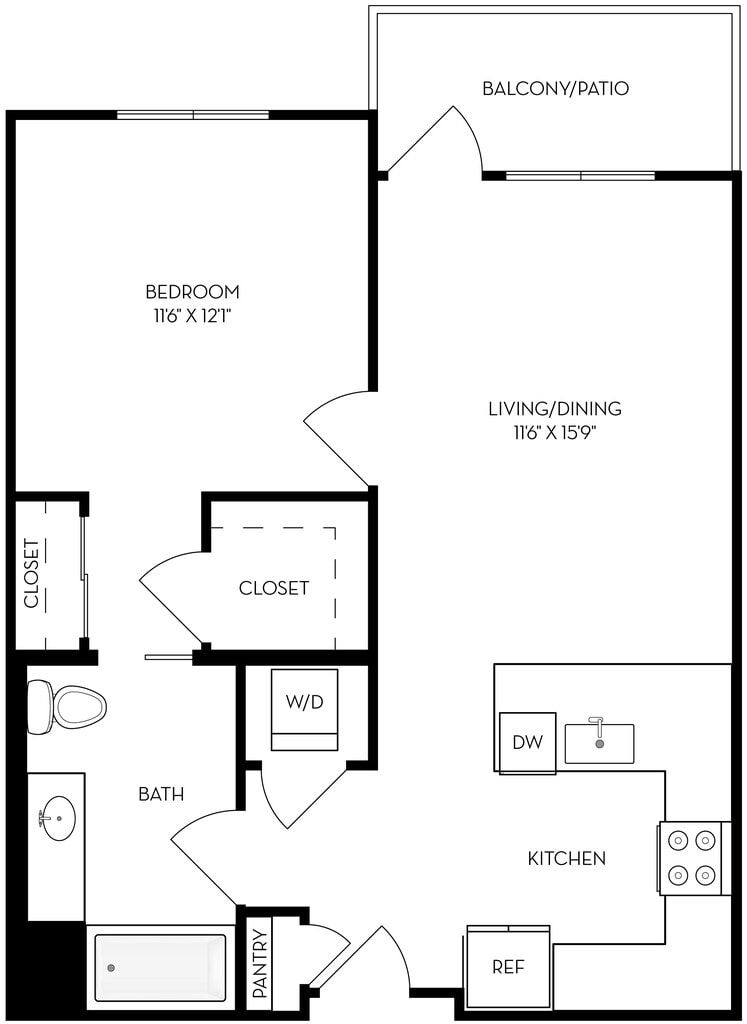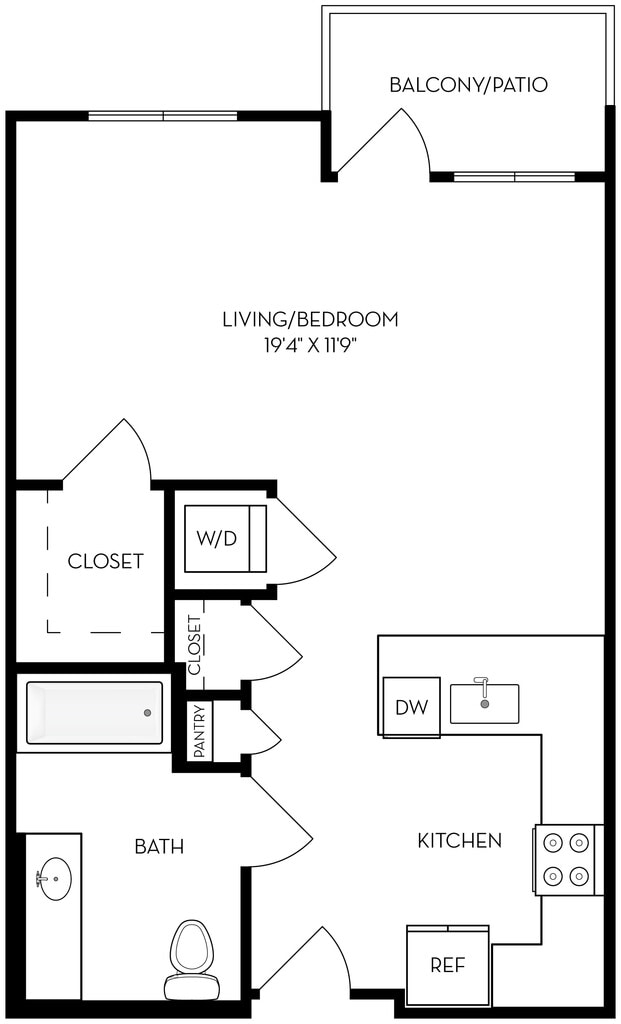 Estudio, 1 Baño, 579 pies²Disponible AhoraGalería del Modelo