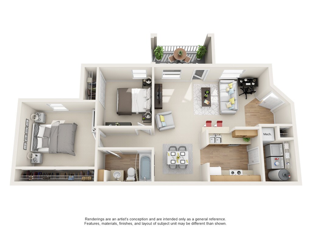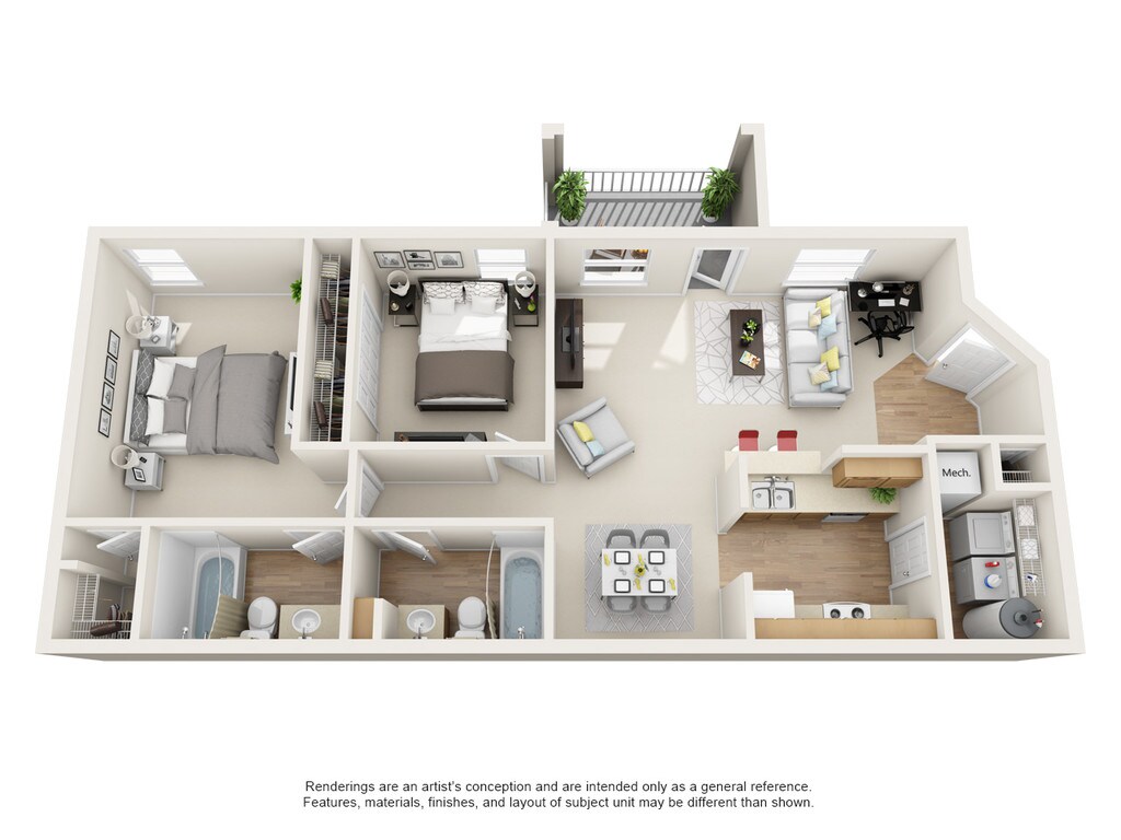 2 Dormitorios, 2 Baños, 980 pies²Disponible AhoraGalería del Modelo
