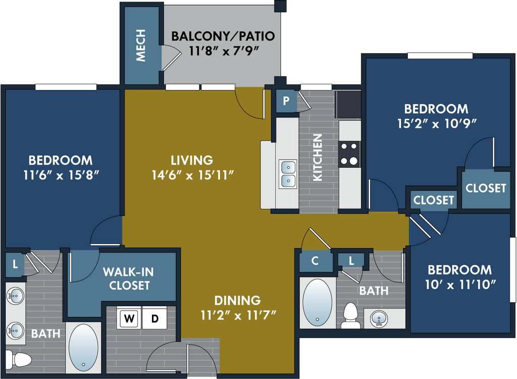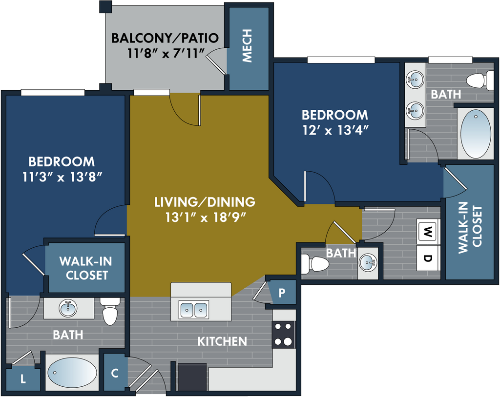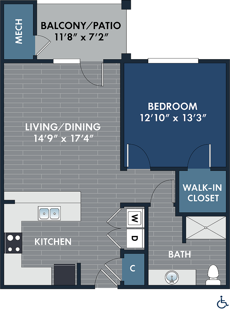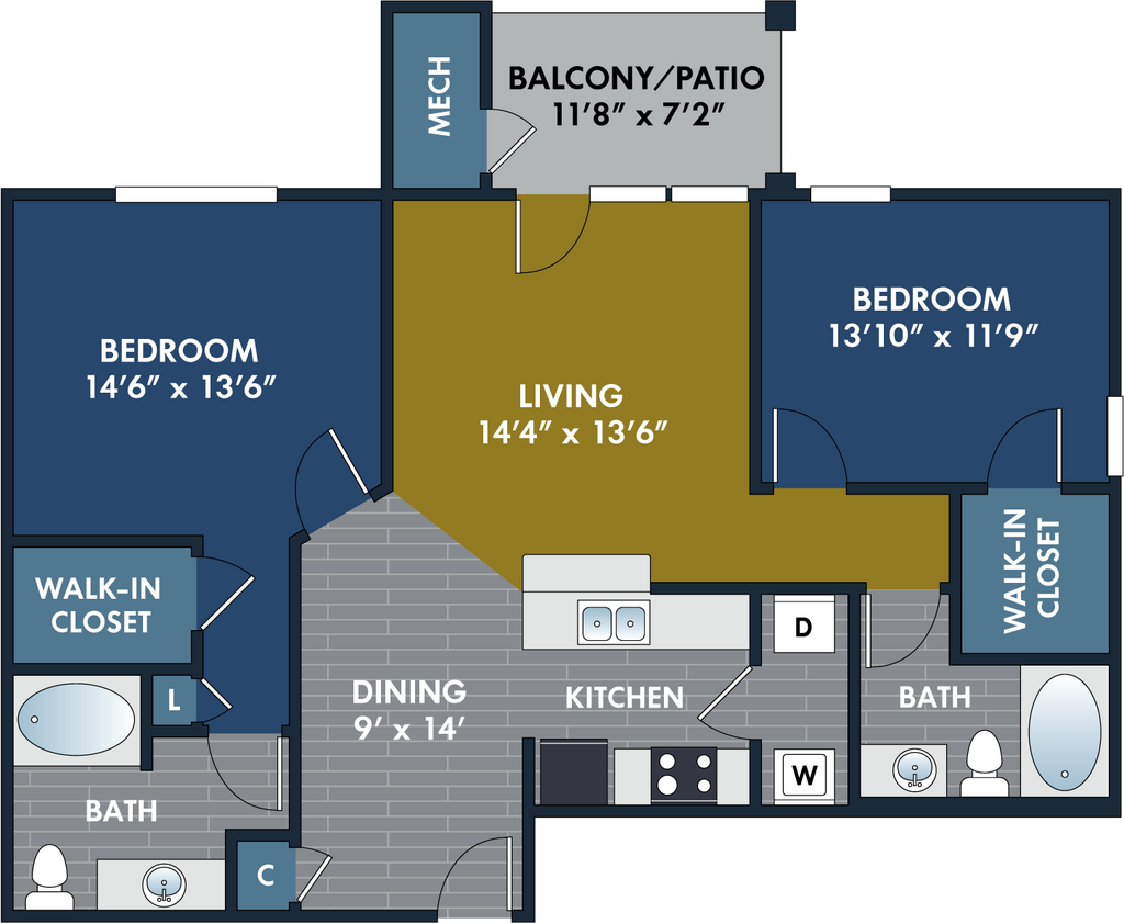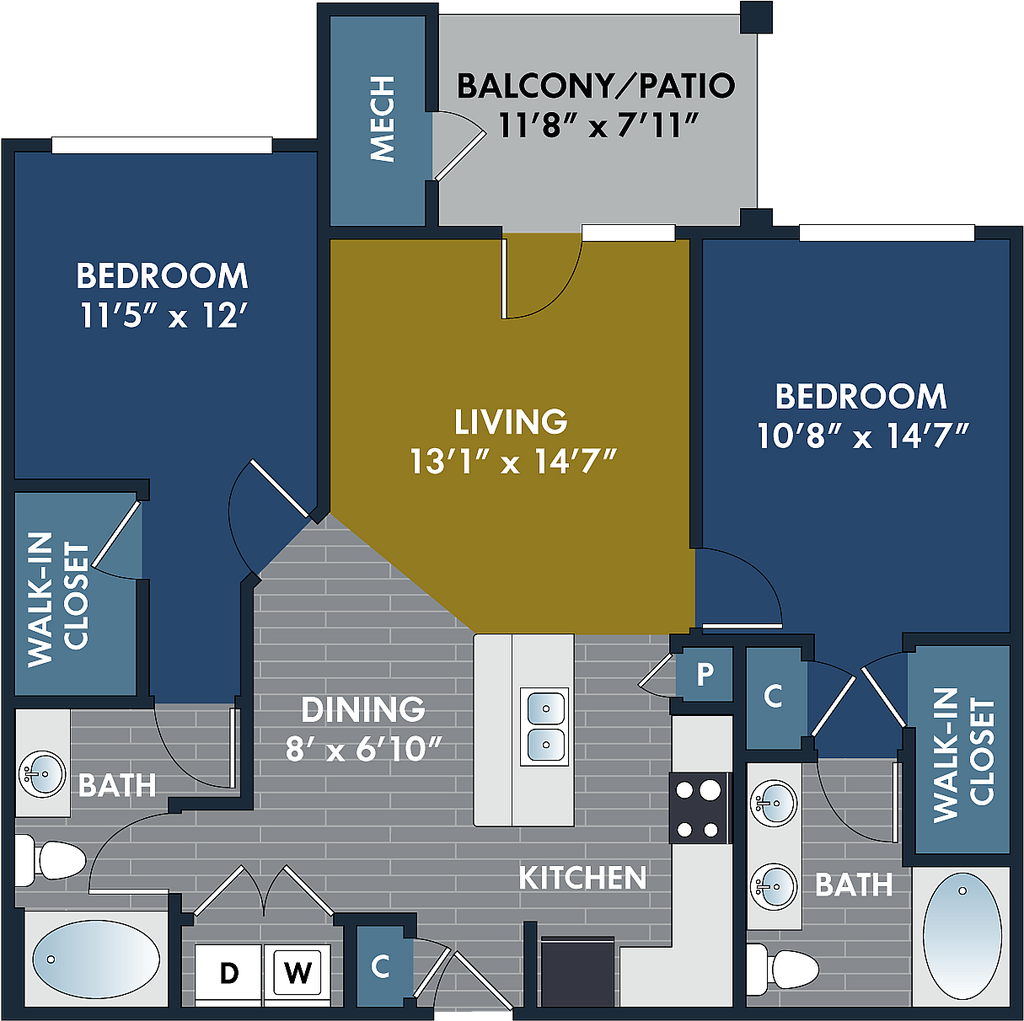 Modelo de apartamento: BarrettDesde $1,4641 Dormitorio, 1 Baño, 694 sq ftDisponible Ahora![]()
