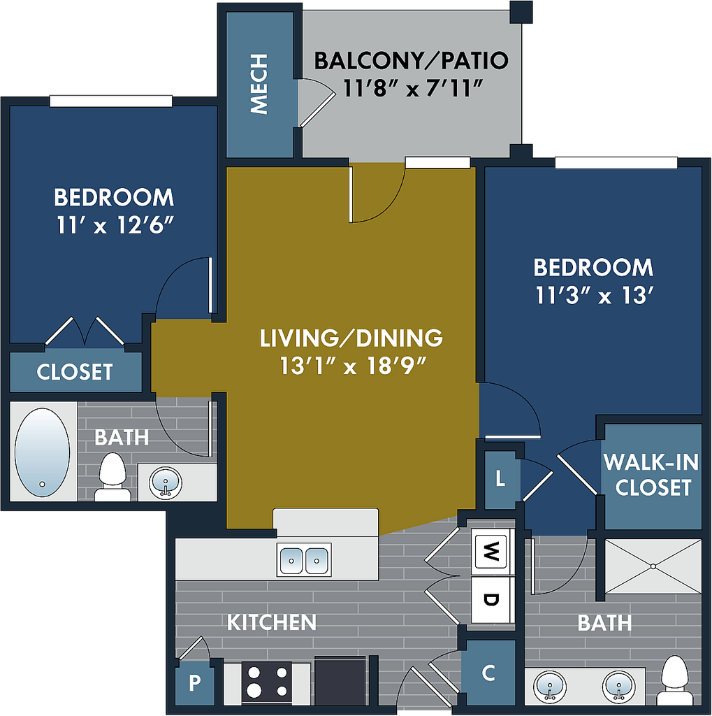 Modelo de apartamento: CovellDesde $1,5861 Dormitorio, 1 Baño, 784 sq ftDisponible Ahora![]()