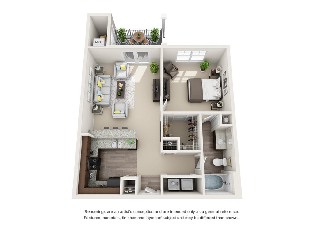 1 Dormitorio, 1 Baño, 684-729 pies²Disponible AhoraGalería del Modelo