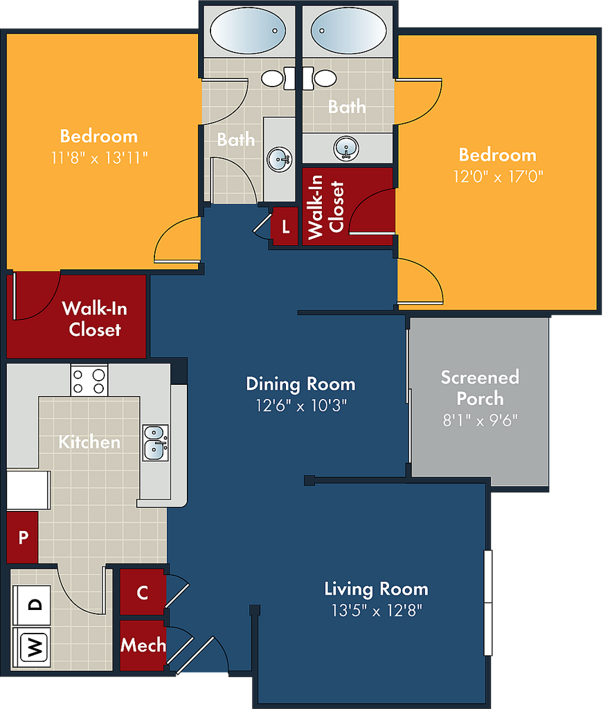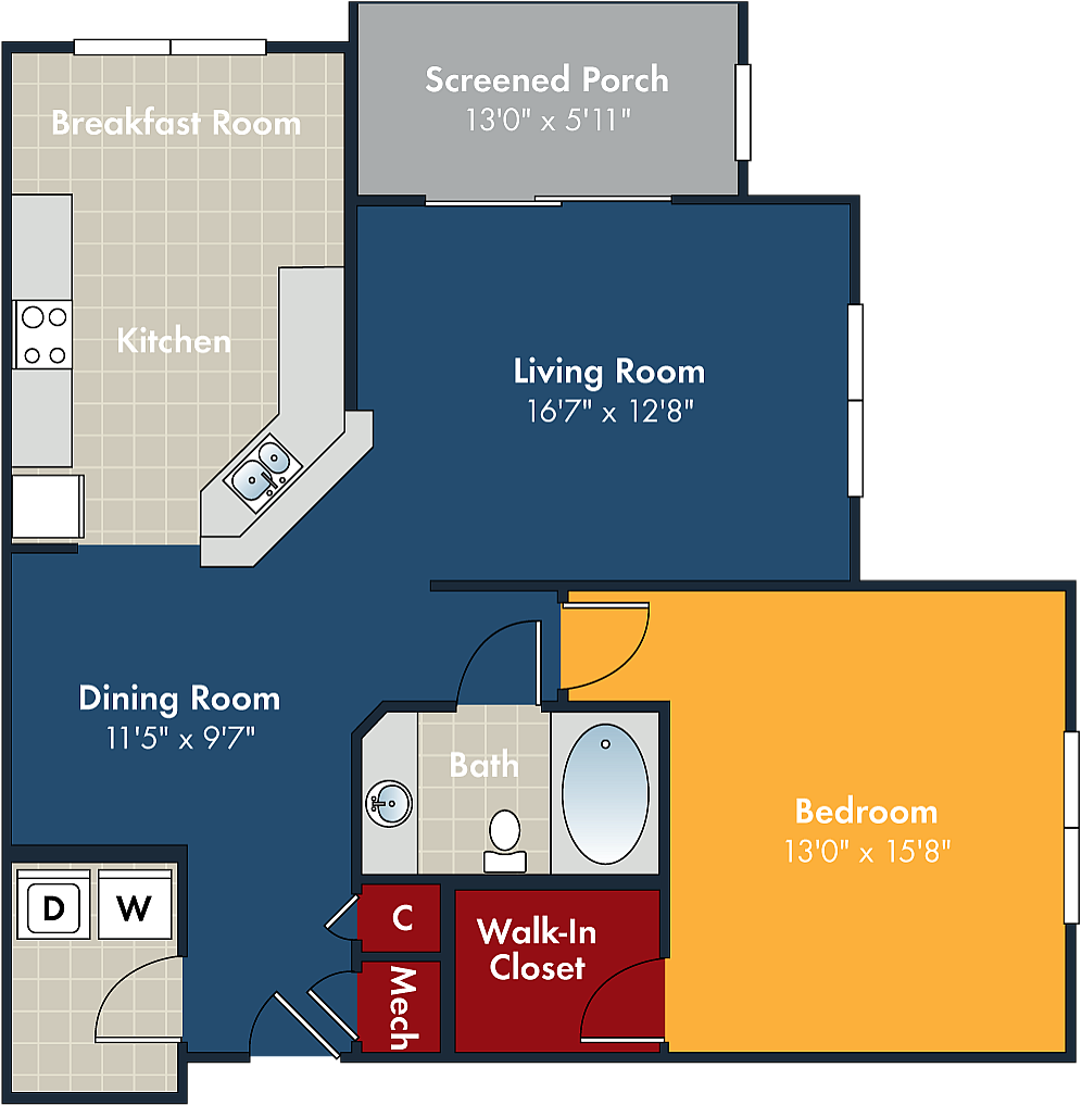 Modelo de apartamento: CobaltDesde $1,4801 Dormitorio, 1 Baño, 816 sq ftDisponible Ahora![]()