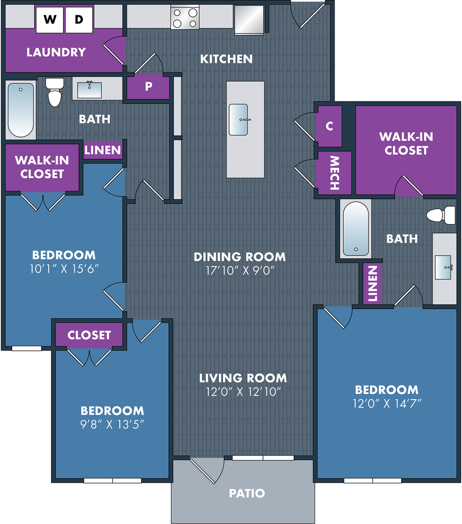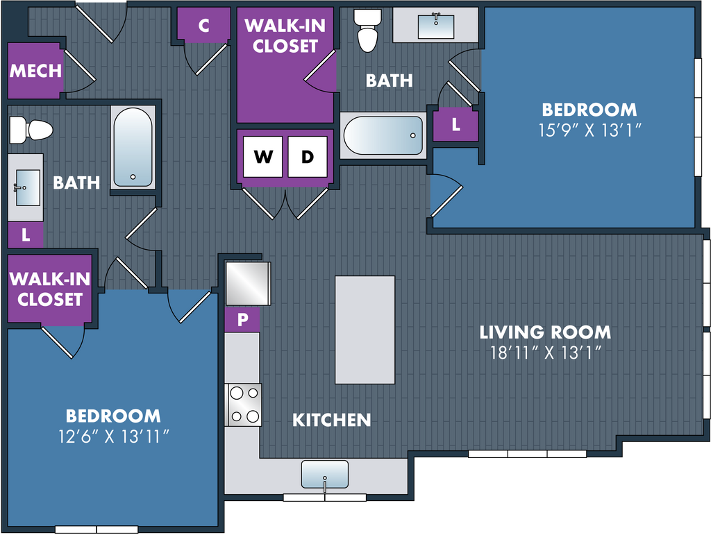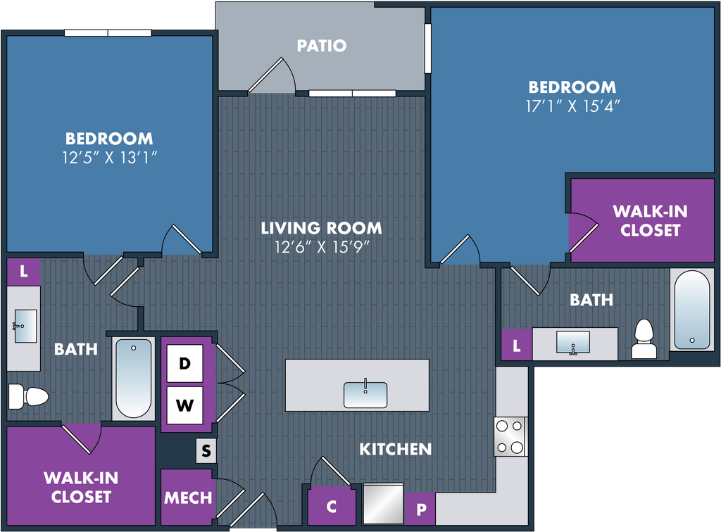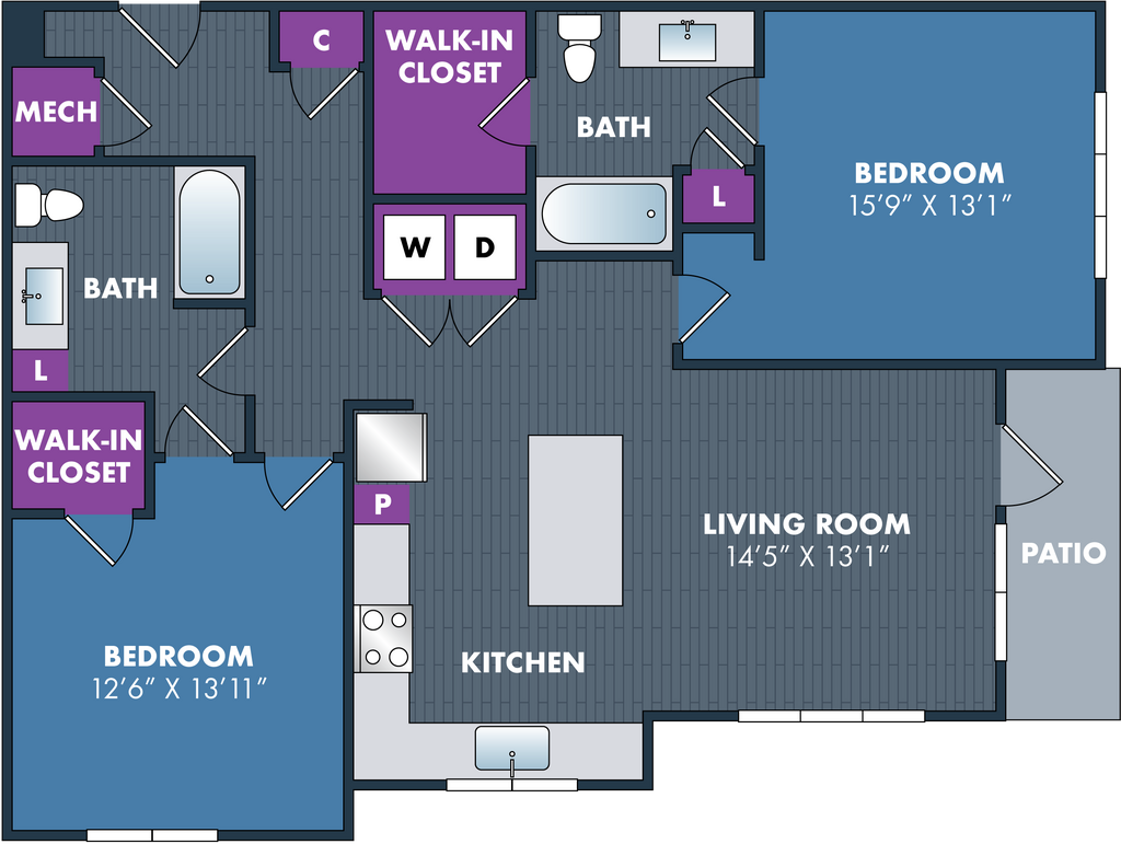 Modelo de apartamento: Da VinciDesde $1,4991 Dormitorio, 1 Baño, 708 sq ftDisponible Ahora![]()