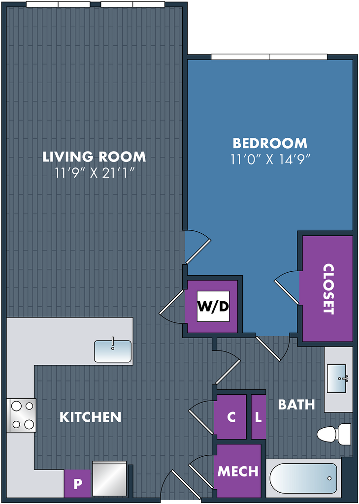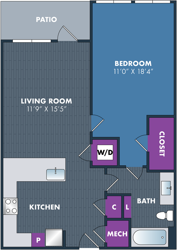 1 Dormitorio, 1 Baño, 549 pies²Disponible AhoraGalería del Modelo