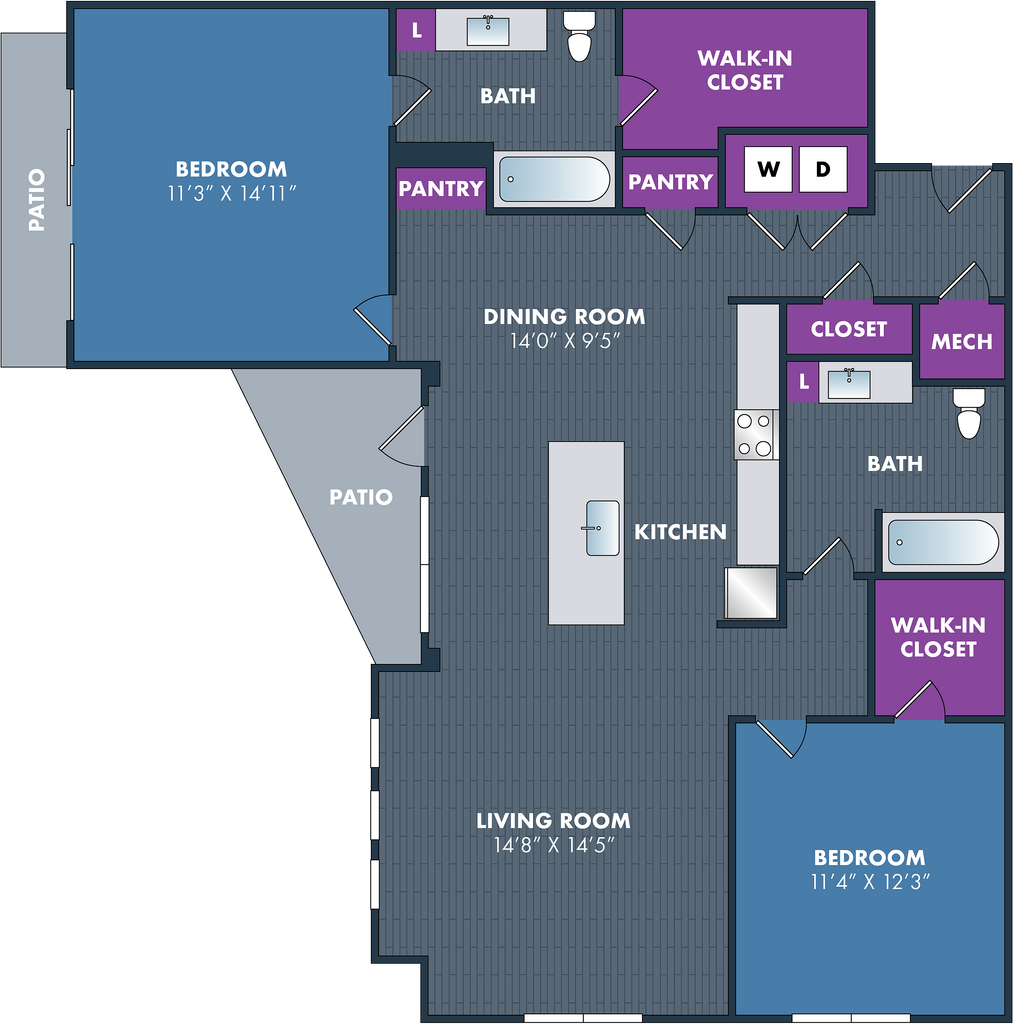 Modelo de apartamento: MatisseDesde $1,4501 Dormitorio, 1 Baño, 772 sq ftDisponible Ahora![]()