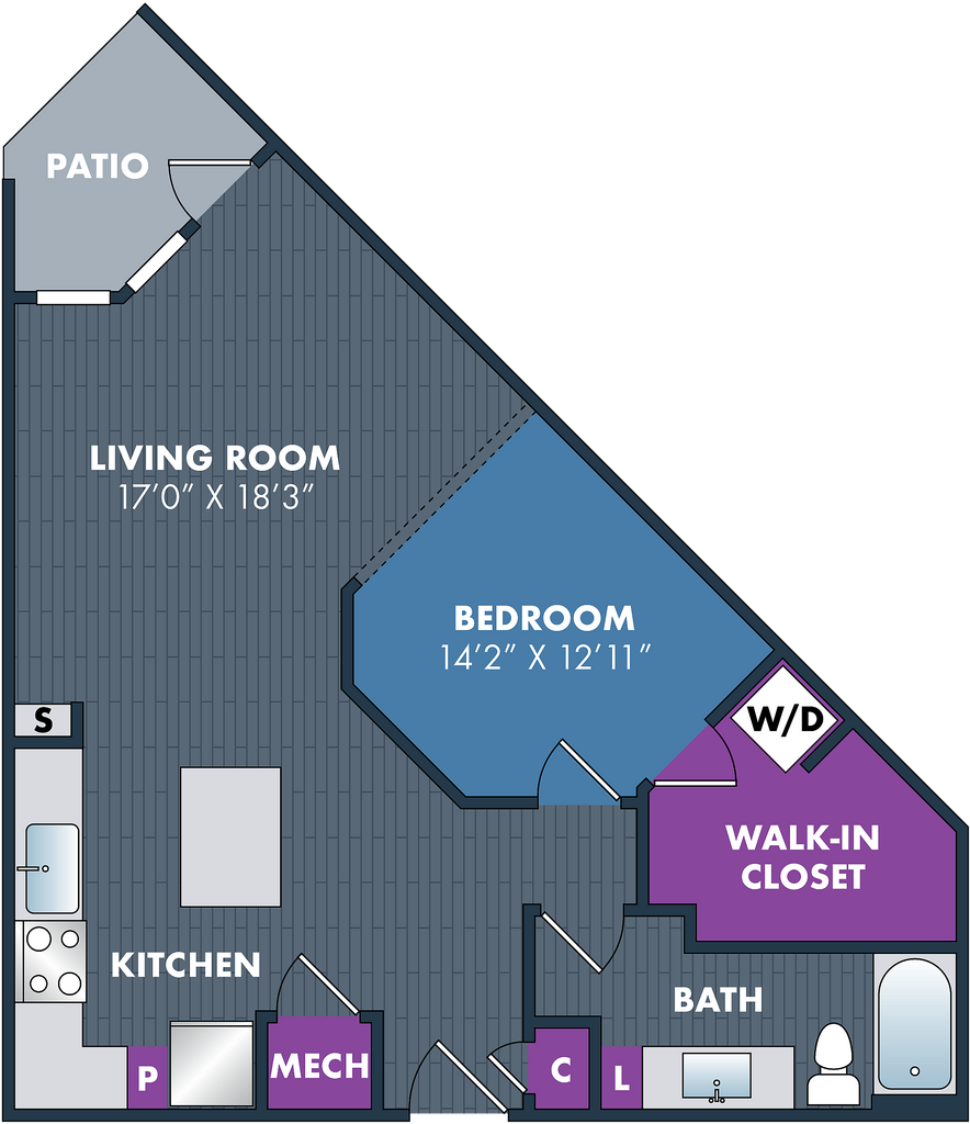 Modelo de apartamento: CezanneDesde $1,3781 Dormitorio, 1 Baño, 578 sq ftDisponible Ahora![]()