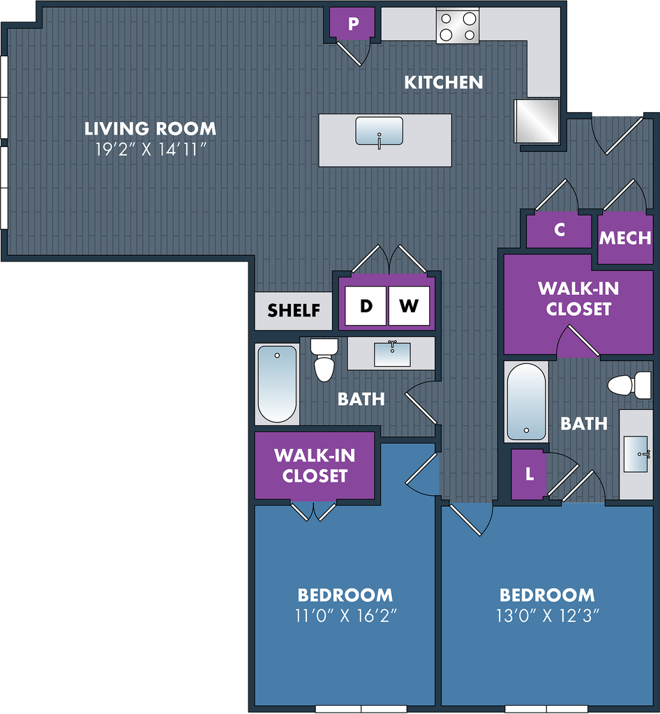 1 Dormitorio, 1 Baño, 772 pies²Disponible AhoraEl más grandeEsta opción tiene las unidades más grandes para este modeloGalería del Modelo