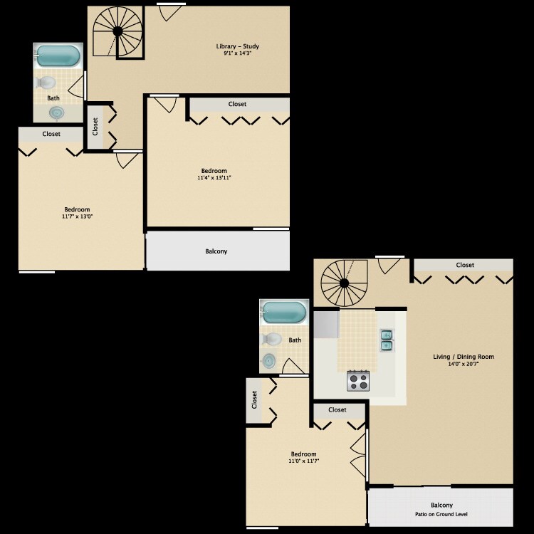 Studio/1 Bath - Plano 3 1 Dormitorio