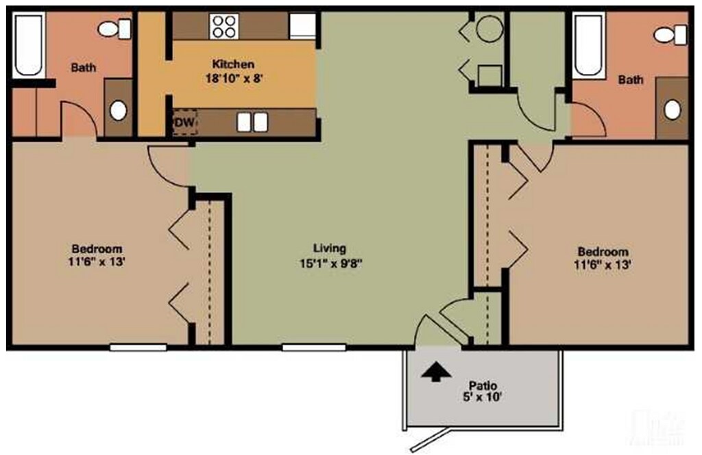 Modelo de apartamento: Berkshire2 Dormitorios, 1 Baño, 900 sq ftNo Disponible![]()