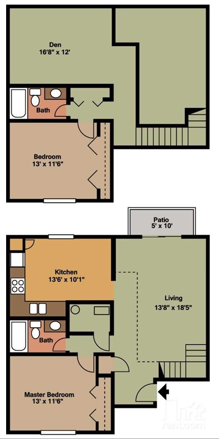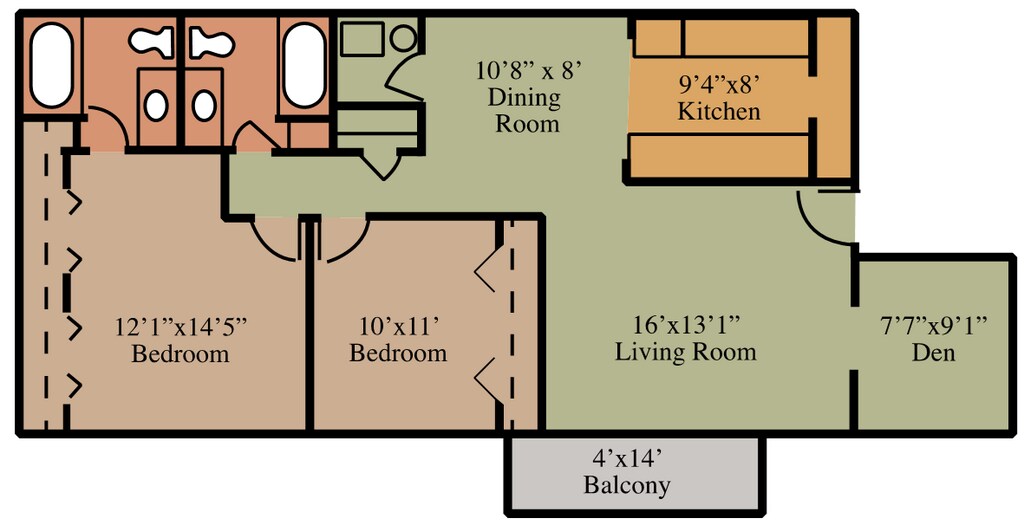 Modelo de apartamento: Kensington2 Dormitorios, 1 Baño, 1086 sq ftNo Disponible![]()