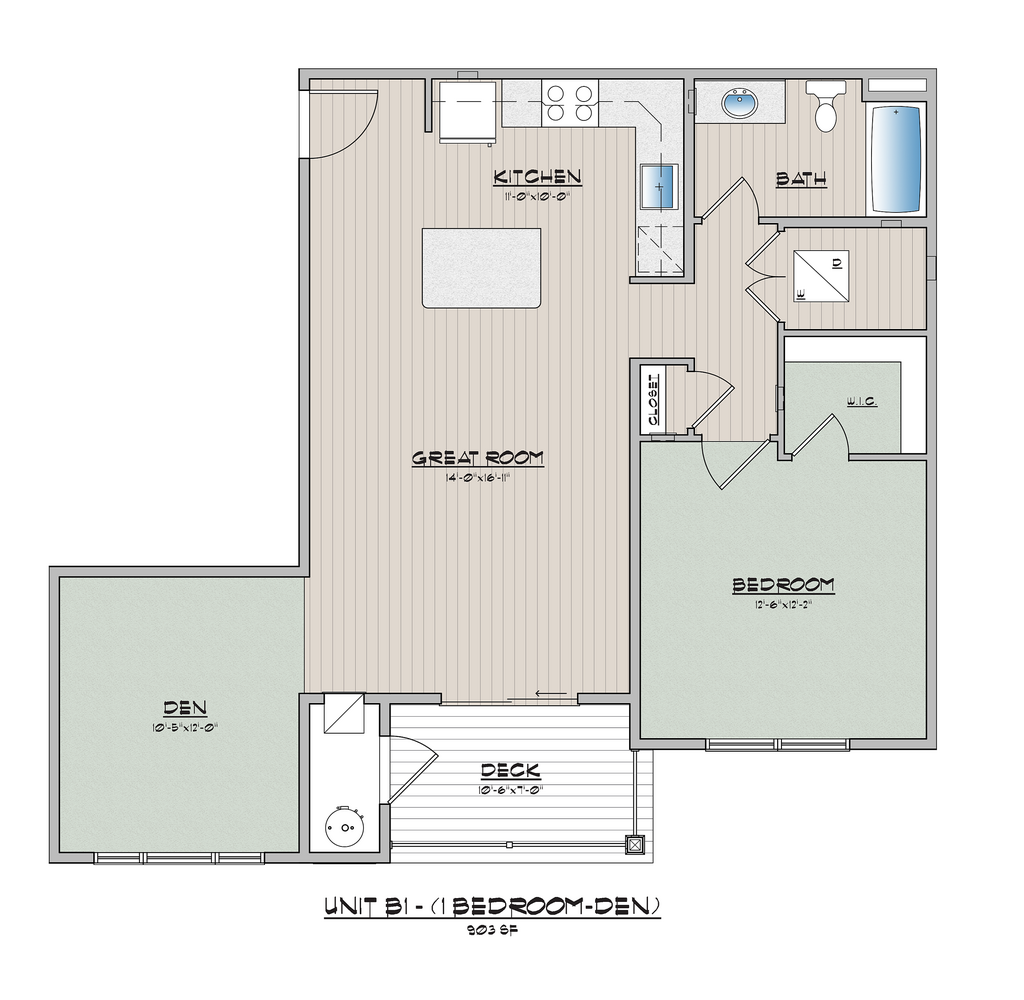 1 Bedroom 1 Bath - Plano 1 1 Bedroom with Den