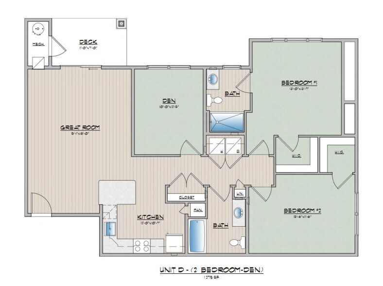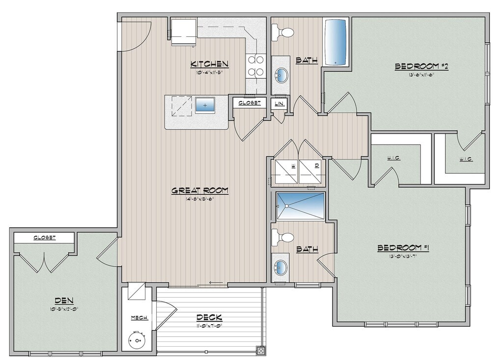 2 Bedroom 2 Bath - Plano 1 Unidad de apartamento: 110-1301Modelo de apartamento: 2 Bedroom 2 BathDesde $2,2252 Dormitorios, 2 Baños, 1128 sq ftDisponible Ahora2 Bedroom 2 Bath with Den