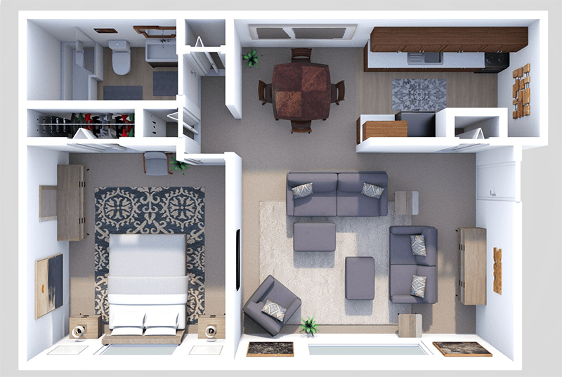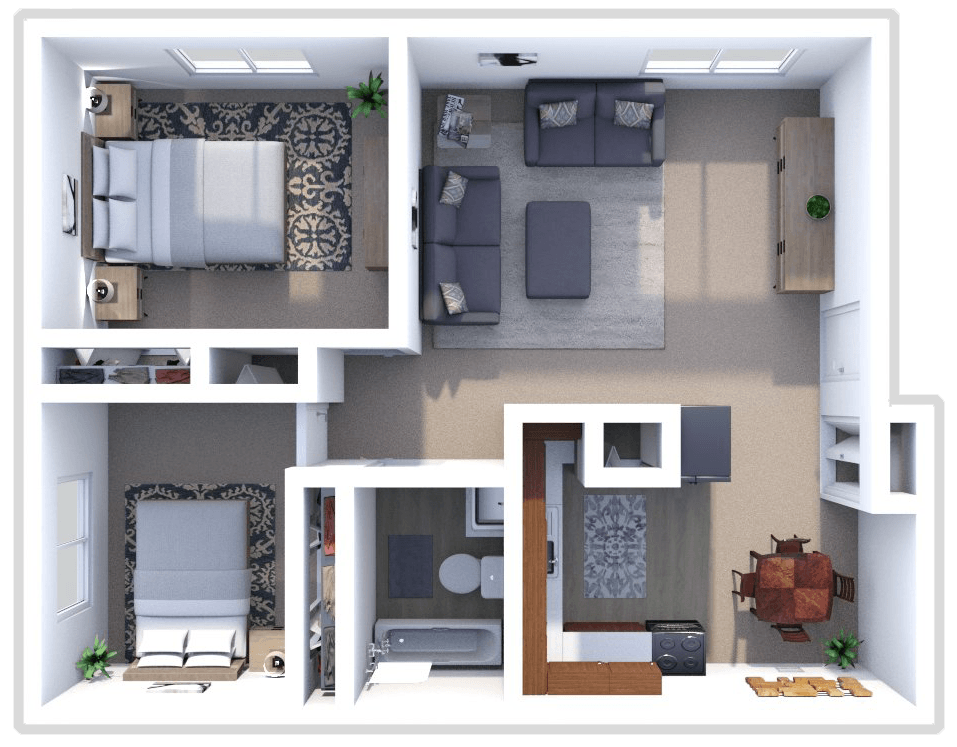 2 Dormitorios, 1 Baño, 760 pies²Disponible AhoraGalería del Modelo