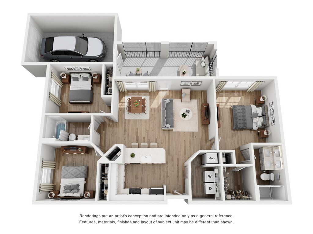 Modelo de apartamento: 1 Bedroom 1.5 Bathroom with Attached GarageLlame para Precios1 Dormitorio, 1.5 Baños, 852 sq ftNo DisponibleLos planos son representaciones artísticas. Todas las dimensiones son aproximadas. El producto y las especificaciones reales pueden variar en tamaño o detalle. No todas las características están disponibles en cada vivienda en alquiler. Por favor, consulta con un representante para obtener más detalles.