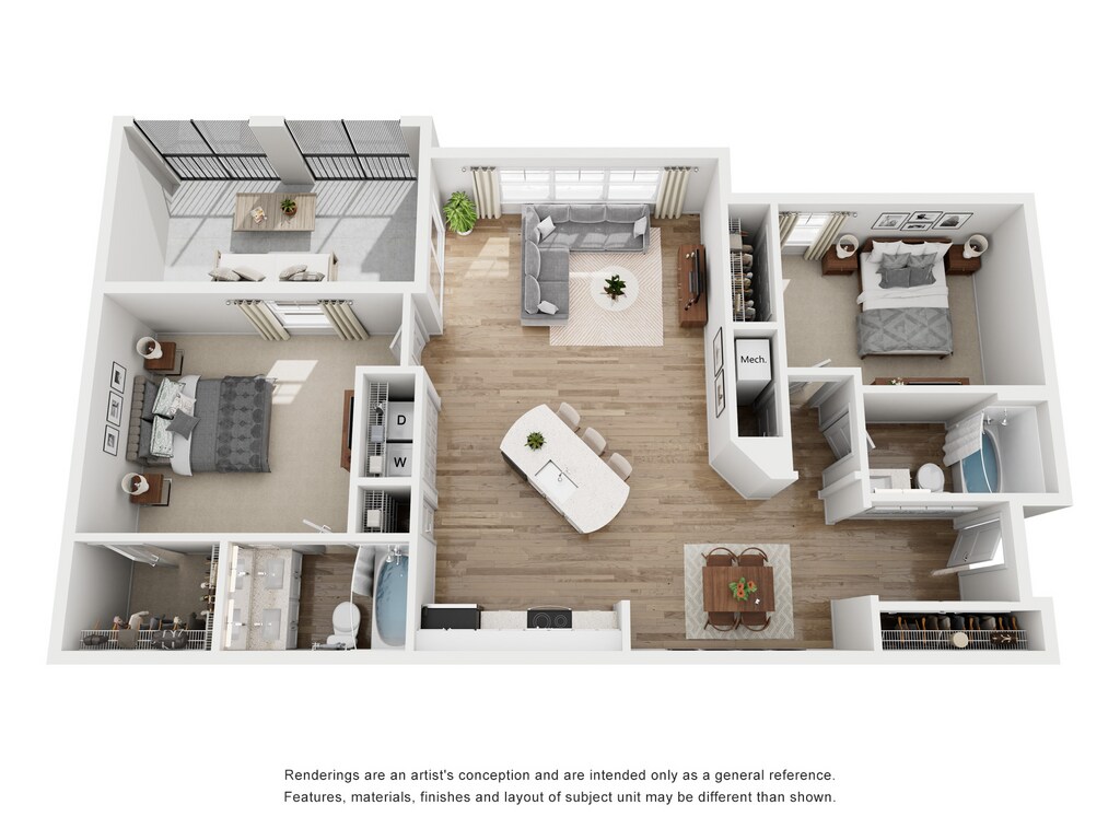 Modelo de apartamento: 3 Bedroom 2 BathroomLlame para Precios3 Dormitorios, 2 Baños, 1379 sq ftNo DisponibleLos planos son representaciones artísticas. Todas las dimensiones son aproximadas. El producto y las especificaciones reales pueden variar en tamaño o detalle. No todas las características están disponibles en cada vivienda en alquiler. Por favor, consulta con un representante para obtener más detalles.