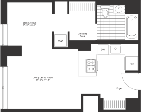 Studio / 1 Bathroom - Plano 11 Unidad de apartamento: 15GModelo de apartamento: Studio / 1 BathroomEstudio, 1 Baño, sq ftDisponible November 22, 2025PlanosFotos![]()