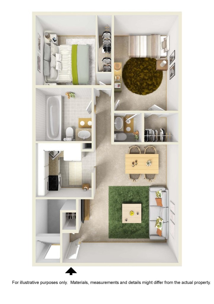 1 Dormitorio, 1 Baño, 758 pies²Galería del Modelo
