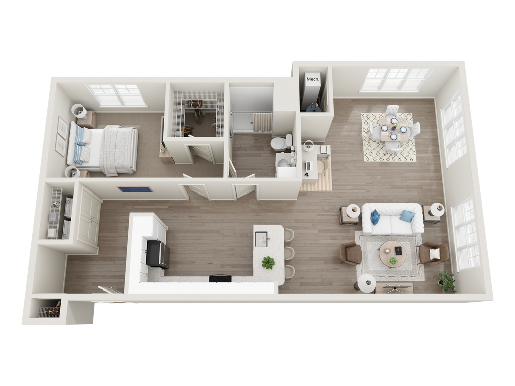 1 Dormitorio, 1 Baño, 887 pies²Disponible AhoraGalería del Modelo